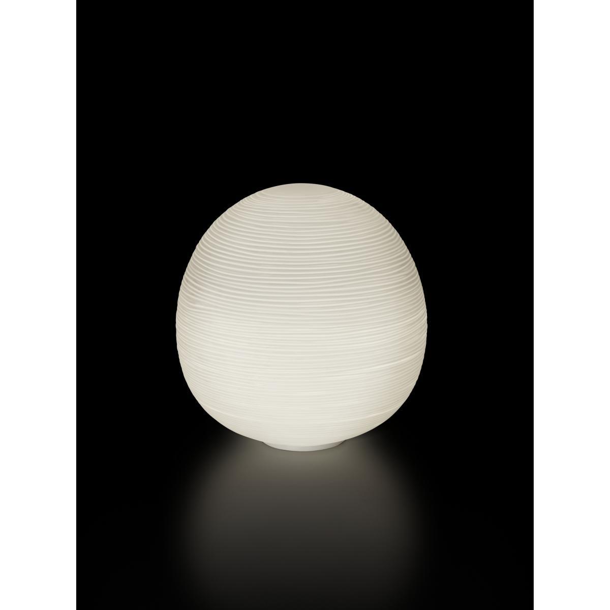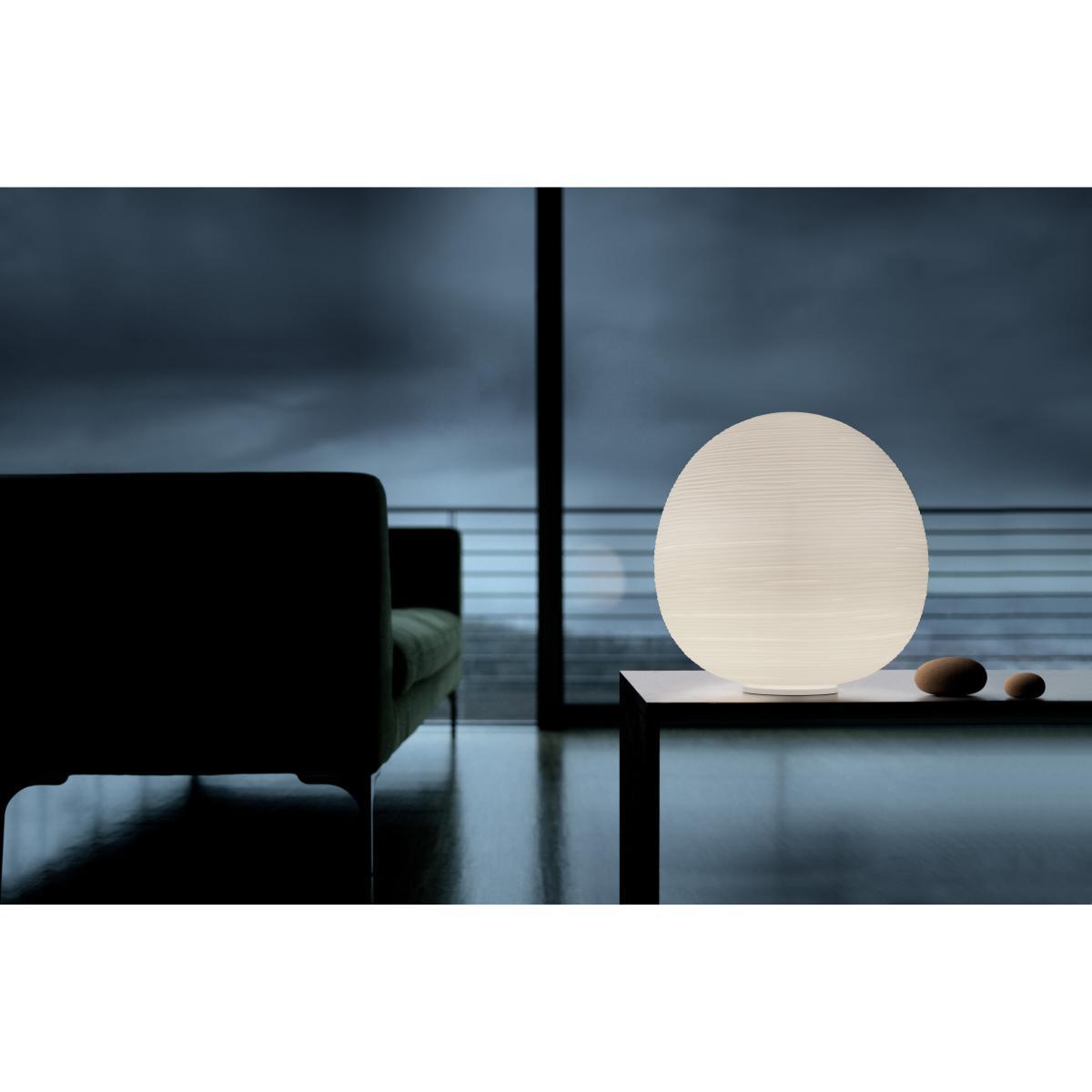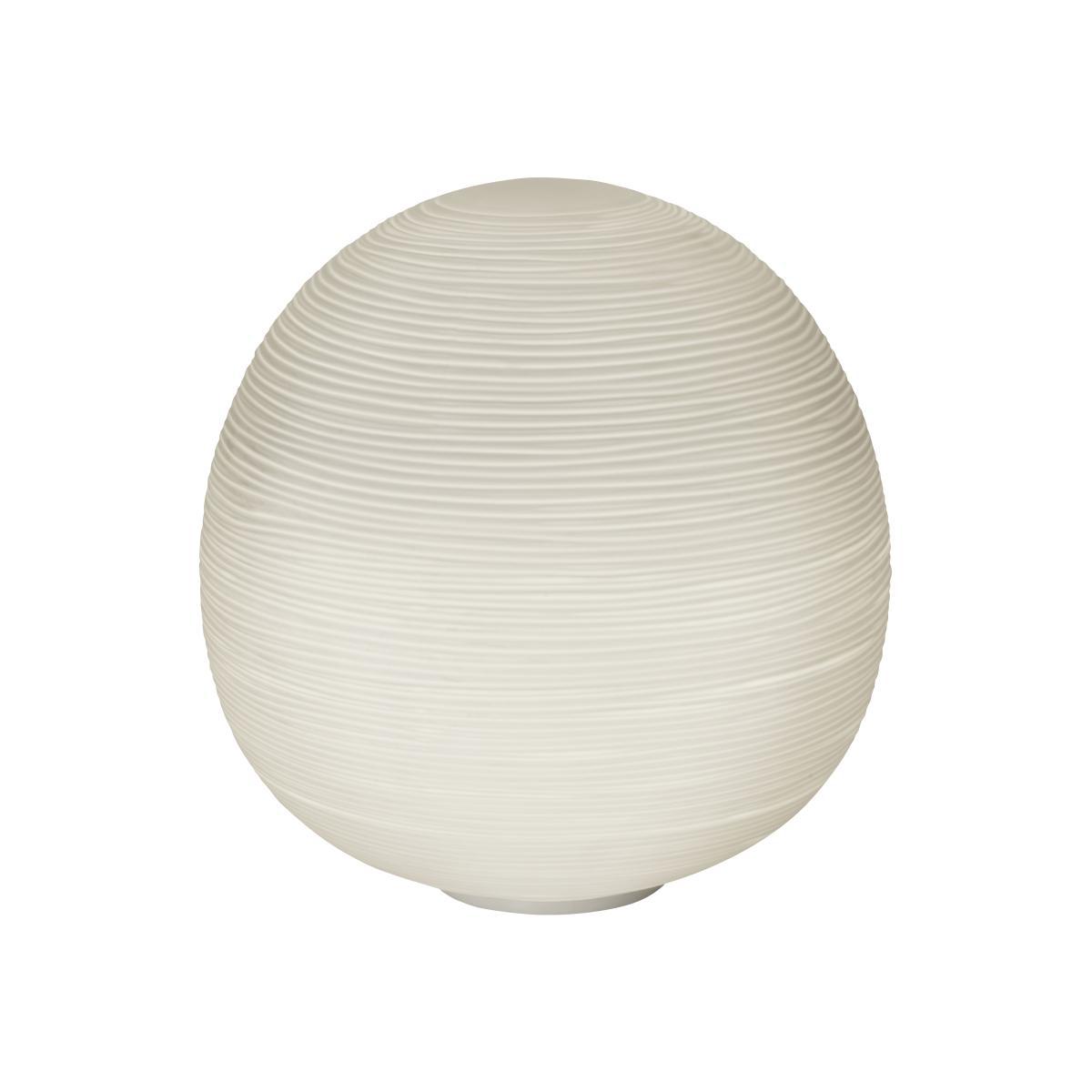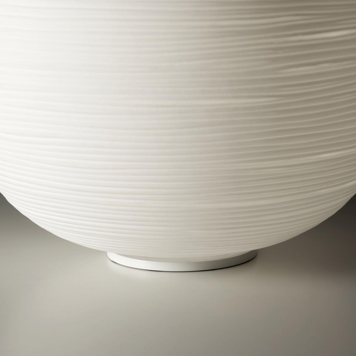 """The challenge was to translate the lightness of washi paper used in oriental lanterns into a group of glass lights. Only Foscarini's experience, combined with the skill of master Murano glassmakers made this creation possible. A new family of table lamps all concentrated on the diffuser and defined by the volume and material nature of glass. Table lamp with diffused light. A collection of three diffuser shapes in hand-blown glass made using a glass-blowing procedure without turning the glass in the mould (referred to as """"stationary""""), the striped effect is achieved using a mould with negative decorations which are repeated across the surface of the glass, which is subsequently ground manually """"by belt"""" and which then undergoes immersion in acid in order to emphasise the plaster-like effect. Available in two versions with G9 (with dimmer included) or E27 lampholder. Rituals emits a very private, evocative light. Each one has a different function and position. The shorter one can be used as a table light, the taller one as a reading light, and the smallest as a bedside lamp. """.