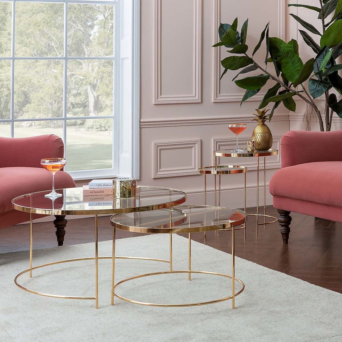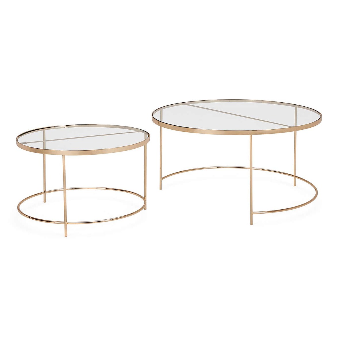 I love these two glass tables because of their sleek, minimalist design that brings a touch of elegance without overwhelming a room. They're versatile and work well in contemporary, modern, or even eclectic interiors, adding visual lightness thanks to the clear glass surfaces. Practical styling tips include grouping some decorative objects like vases or candles on the larger table to create a focal point, while the smaller one can serve as a convenient spot for books or a tray. Their transparency makes them ideal for smaller spaces, helping to maintain an open feel, and the set allows for flexible placement-either nesting together or spaced apart for varied visual interest.