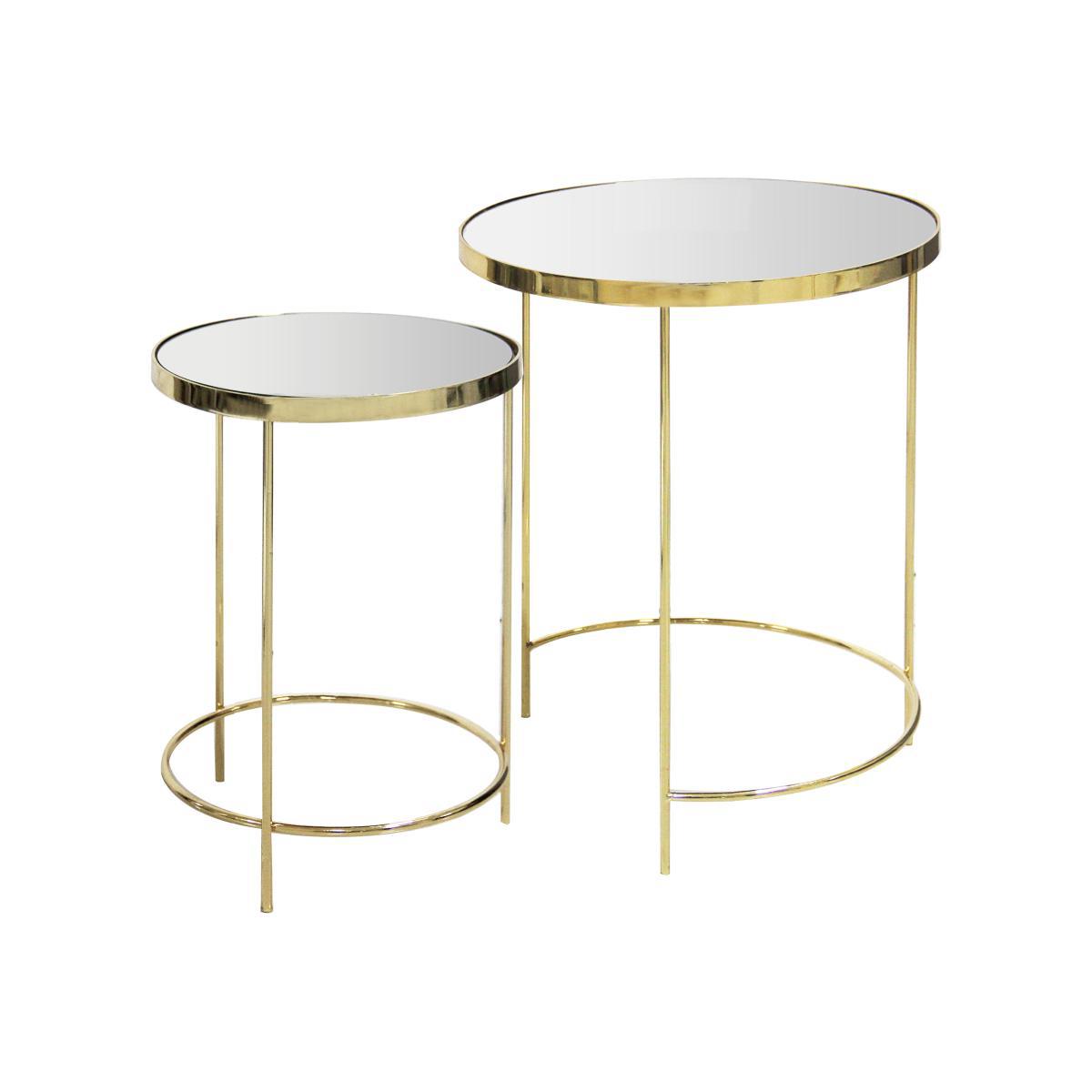 Dunelm Exclusive - Designed and Developed by Dunelm. Elegantly created, this fully assembled nest of tables is crafted with a stunning mirrored top and sturdy metal frame. Finished with gold plated coating, this nest of tables comprises of two table that fit neatly together.