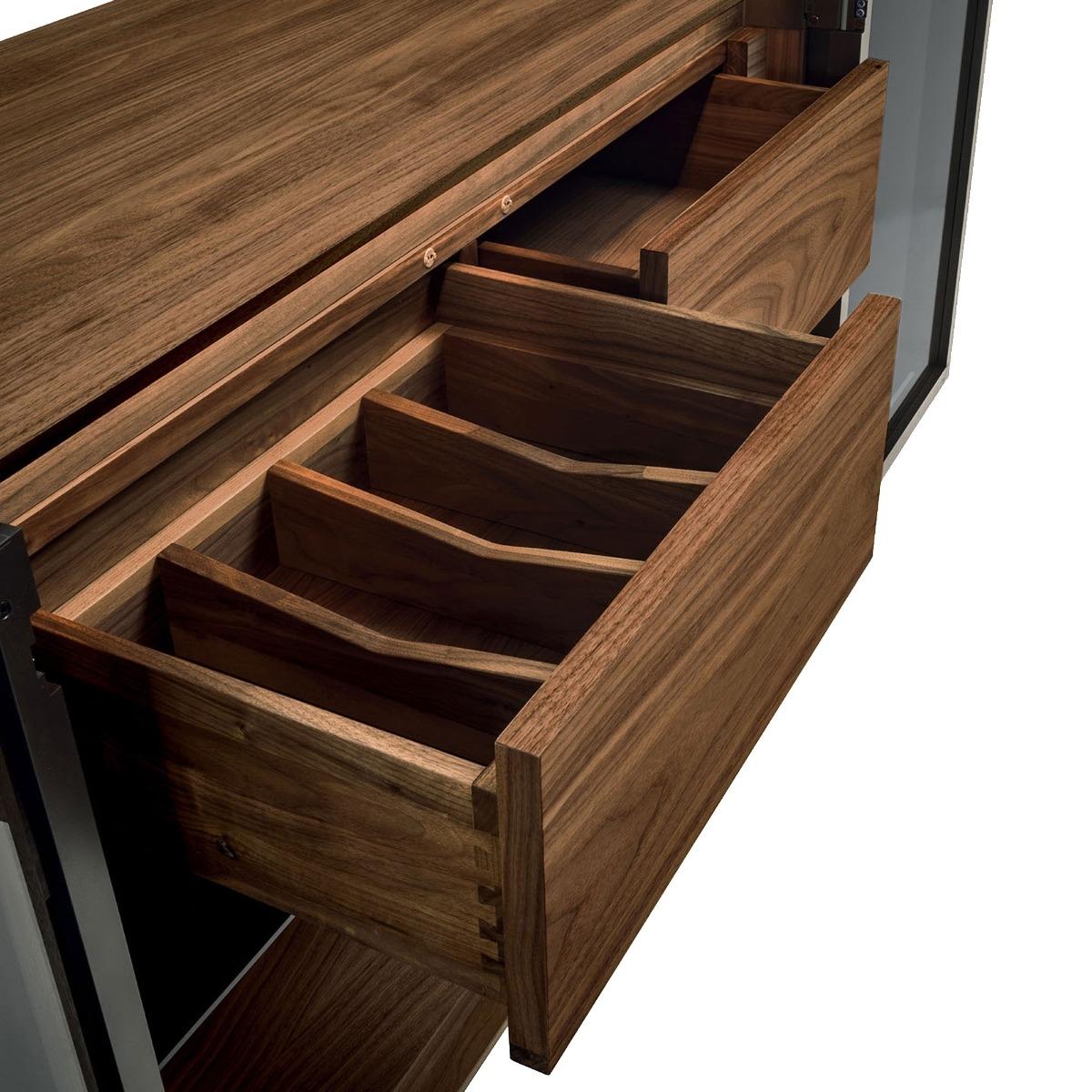 Design. A captivating classic, the Pandora Cabinet in Walnut is a multifunctional and timelessly stylish piece for any room of the house. Four glass doors conceal glass shelving and two drawers for elegant and functional storage space. The highlighting feature of Pandora is the internal LED’s that ignite automatically by sensors when the doors are opened, adding stunning, modern luxury. With beautiful dovetail joinery and a silky-smooth finish, Pandora is a sophisticated choice with plenty of character. For more information and to discuss additional options complete our. Enquiry form. Or. Contact our specialist brand advisors.