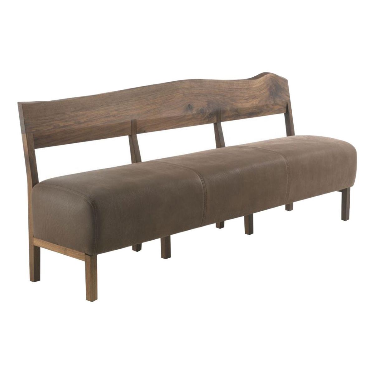 Made in Italy, this luxurious design takes a rustic approach to contemporary interiors pairing sumptuously carved wood with elegant Italian upholstery. The refined carpentry of the Betty Bench contrasts smoothly carved lines with the natural knots and wood grain of walnut, while soft, Utah bull leather provides a comfortably cushioned seat.