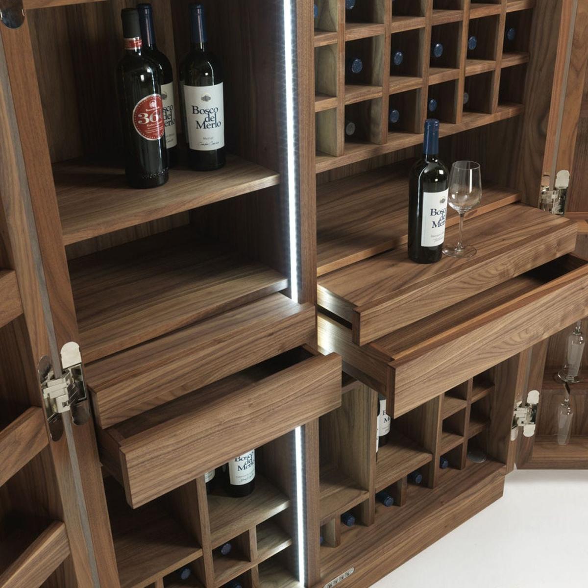 The subtlety and richness of a fine wine collection deserves an equally opulent display. A sublimely crafted wine cabinet, the Cambusa displays the beautiful grain of dark walnut while offering all of the storage solutions a wine lover could ever wish for.