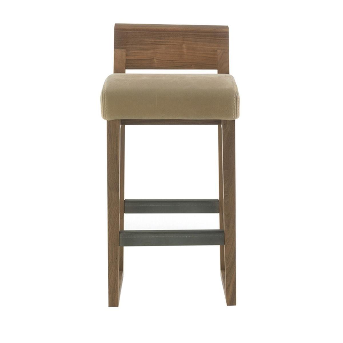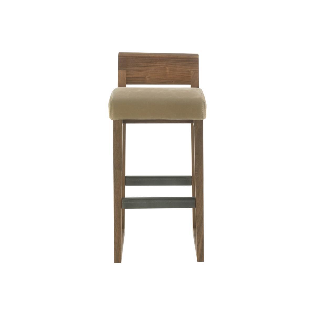 What better way to enjoy a cocktail at the end of a long day than in the smooth lines of this modern framed bar stool. The refined carpentry of the Dino Hi Stool contrasts smoothly carved lines with the natural knots and wood grain of walnut, while soft, nubuck leather upholstery provides a comfortably cushioned seat.