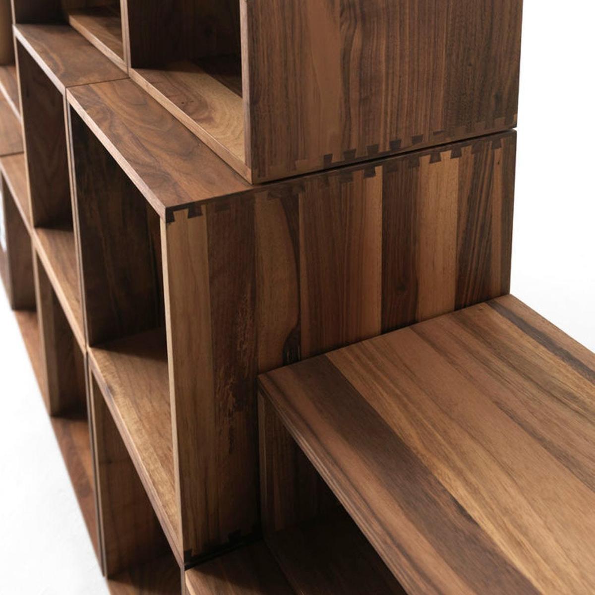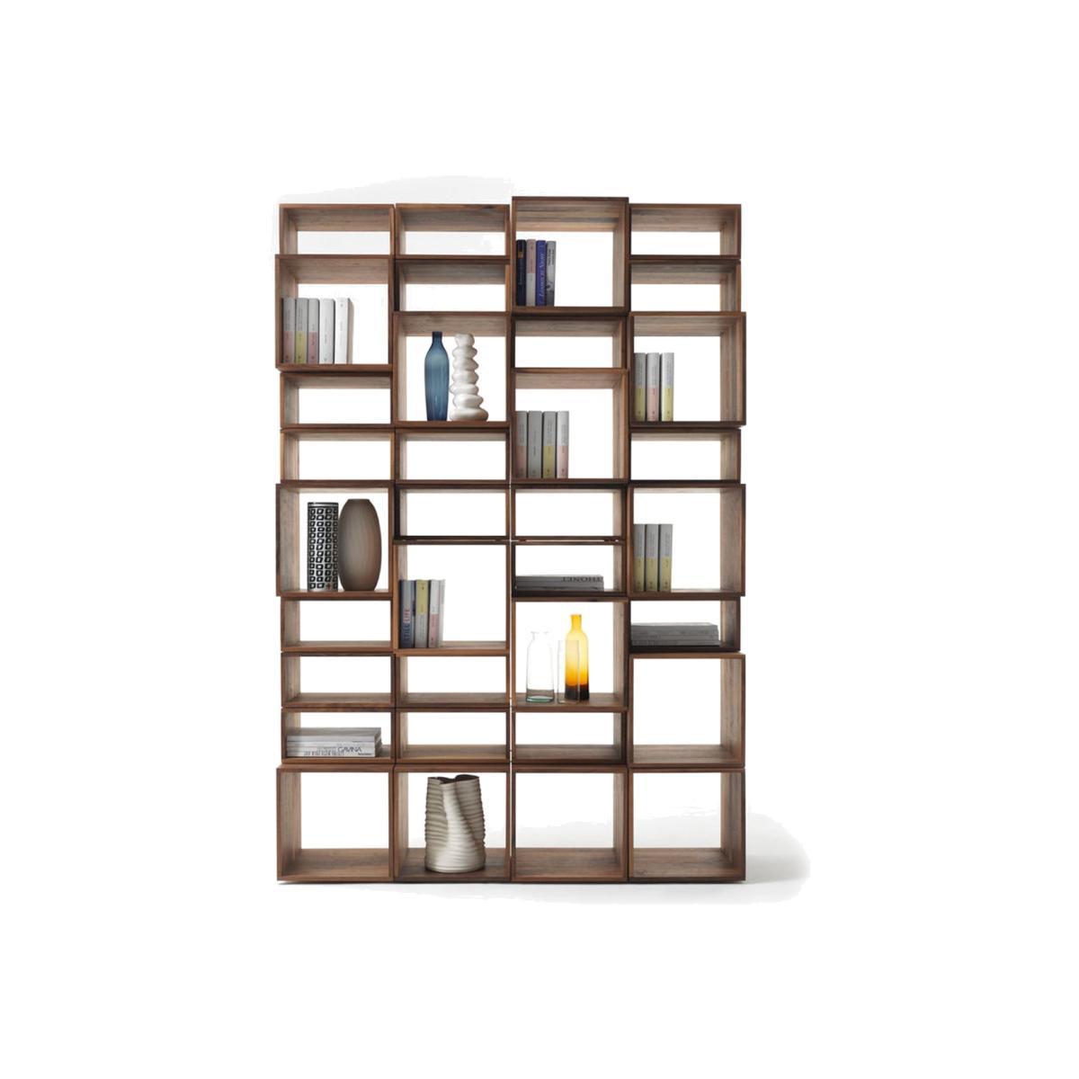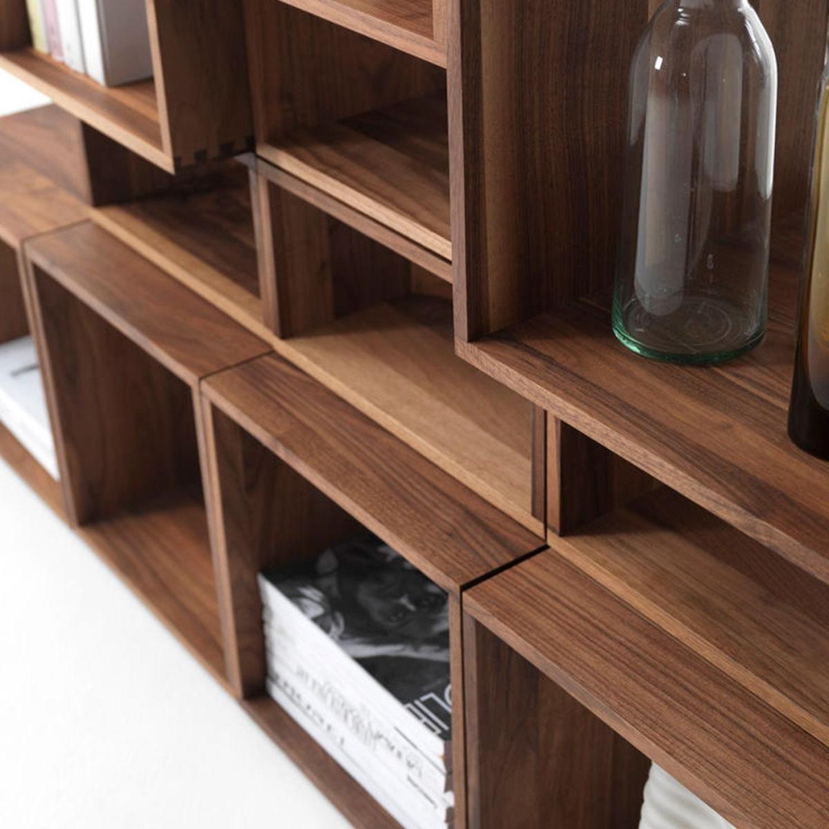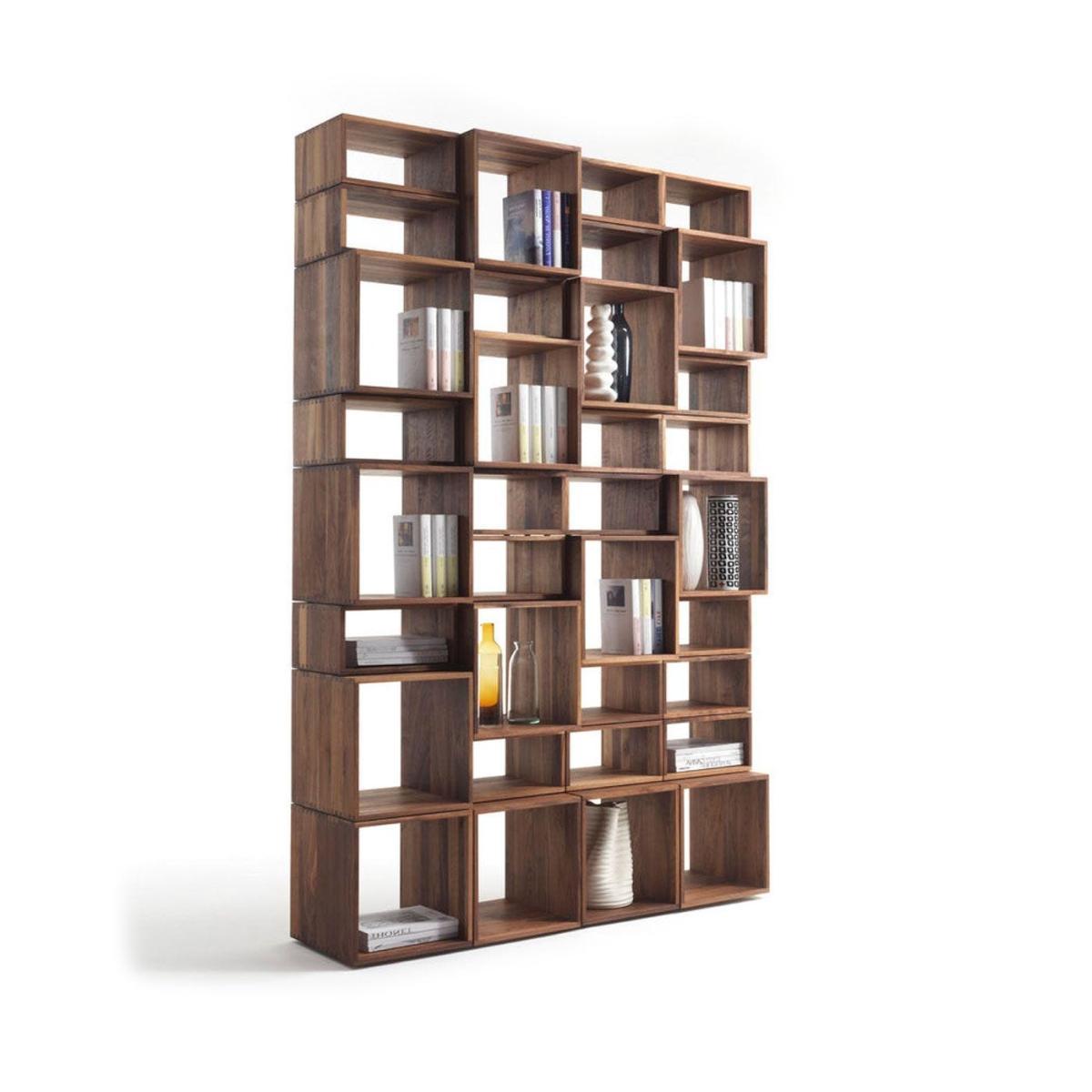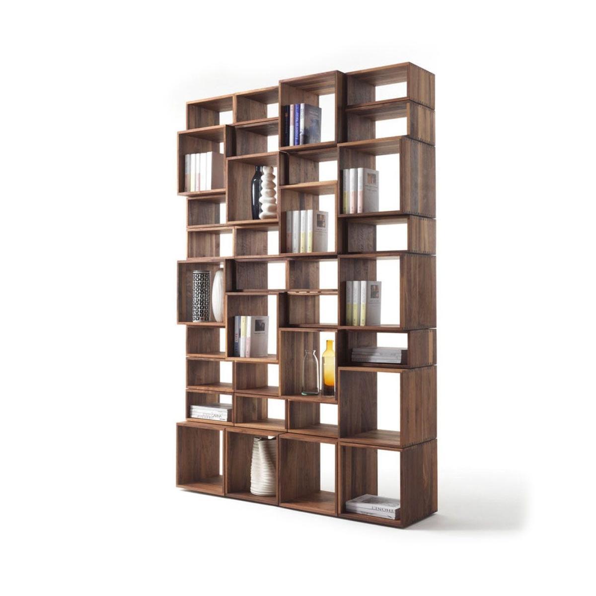 Made of solid walnut, this bookshelf gives you the Freedom to create your own unique design. Consisting of 34 independent modules, the variety of different shapes and sizes can be stacked and alternated to produce ever-changing compositions from the classic tall bookcase to a wide room divider.