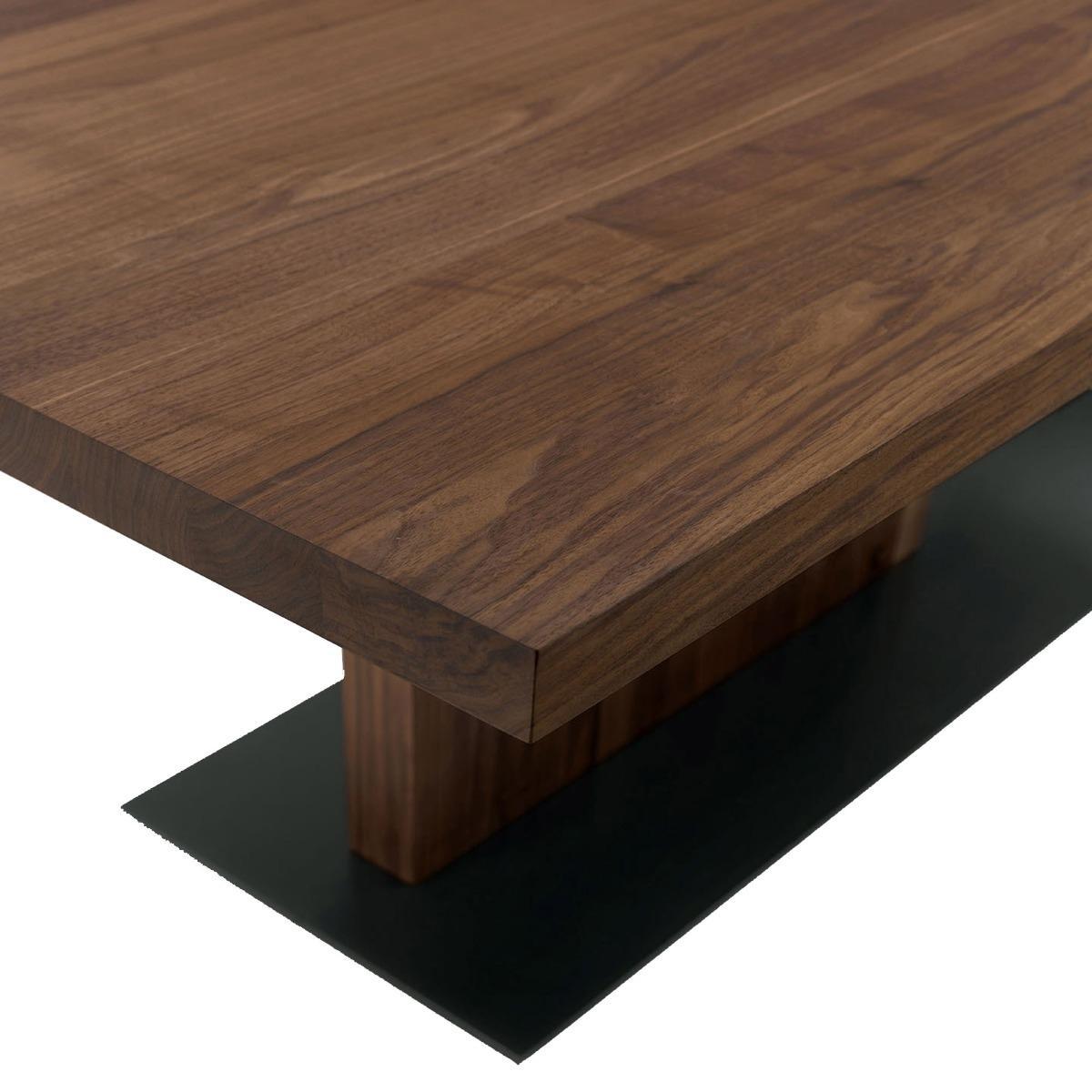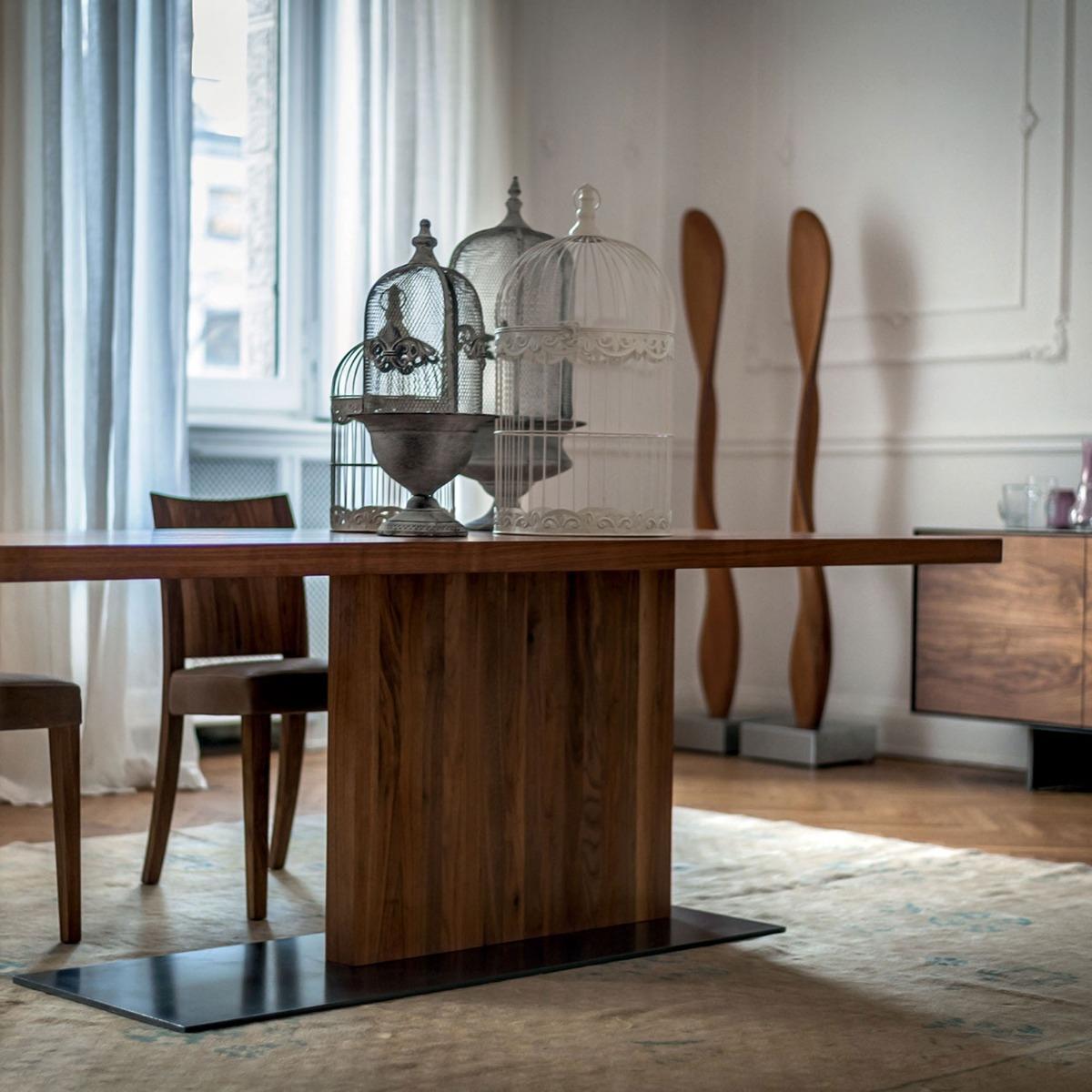 Design. A dining table with a difference; the Liam Wood Dining Table is designed and created in Italy, and made from sustainably sourced, high-quality materials. The stunning asymmetrical base brings a subtle, modern taste, and sits on a sturdy metal plate for support. The smooth walnut top is sanded and oiled by hand for an authentic finish, in tune with the quality care of RIVA 1920.