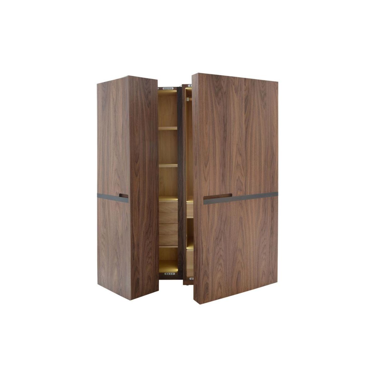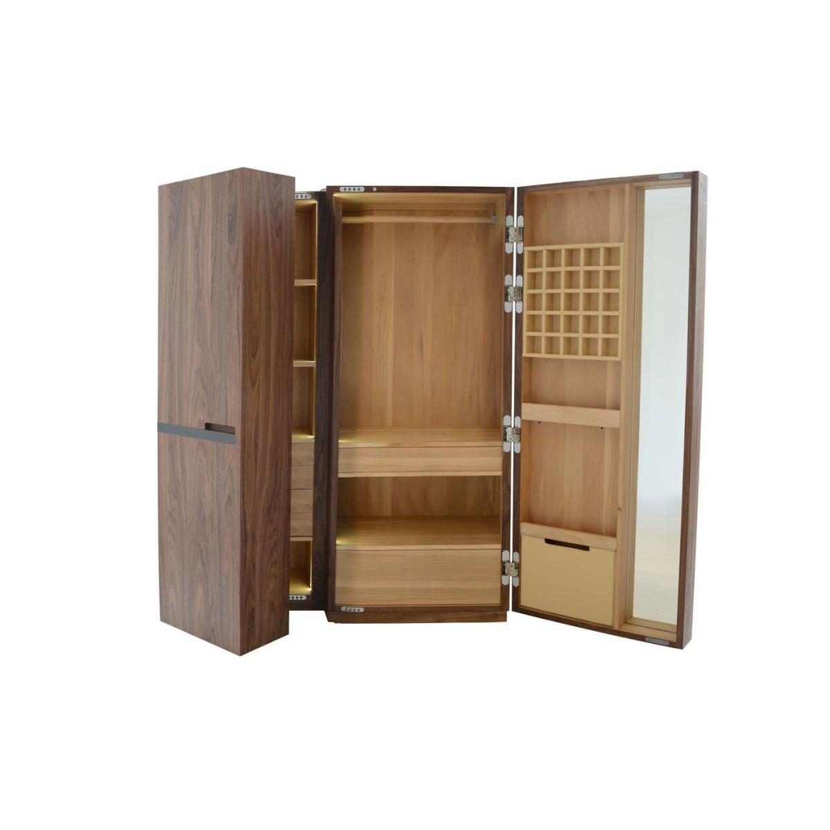 Designed and made in Italy by Giuliano Capelletti, the Nuit is a contemporary twist on the traditional trunk container. Evoking memories of the past, this roomy wardrobe is an example of hand-crafted wood working to, comprising two different-sized sections that blend together as one generously-sized storage space.