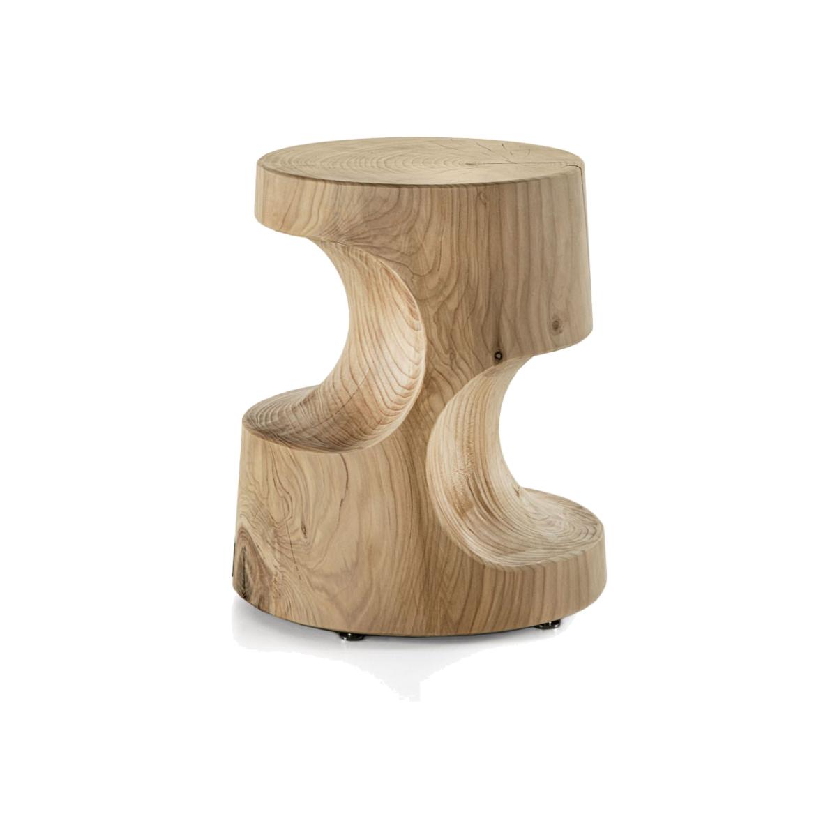 I love this little stool because of its sculptural quality and versatile functionality. Its organic, curvaceous form makes it an eye-catching piece that fits well in modern or rustic interiors alike. Perfect as an accent piece in a living room or as extra seating in a bedroom, it also works wonderfully as a side table or plant stand. When styling, consider pairing it with natural textures like linen or stone to highlight its wooden finish, and place it where it can be appreciated for its unique craftsmanship. Its playful yet sophisticated silhouette makes it a practical and stylish addition to a variety of contemporary spaces.