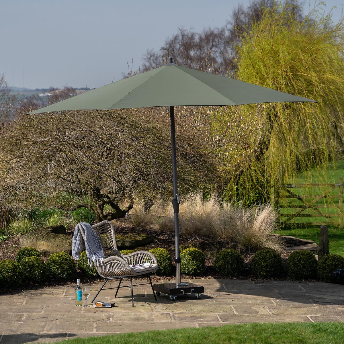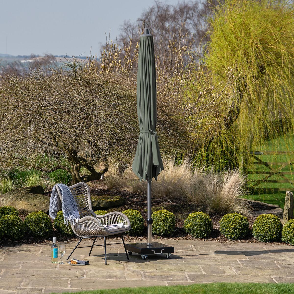 The Riva Parasol is available in three sizes (2.5m, 3m and 3.5m) and all four colours including Anthracite, Luna Grey, Taupe and Olive. It features an easy-rotate crank and tension springs that ensure a smooth operation and keep the canopy taught. Its handy tilting system enables you to create the perfect shadow in your garden, patio or balcony. The 3.5m round version has a ticker pole and no tilt mechanism so that it is more wind resistant. Packaged Dimensions: 183cmx 17cmx 17cm Weight: 8kg. Please note Parasol Bases are sold separately. This item can be delivered to all UK Mainland postcodes with the exception of the following postcodes starting with; AB, BT, DD, IV, KW1-14, PA21-38, PH, TR17-27 & ALL ROI.This product will be dispatched by one of our trusted suppliers. You’ll be contacted by their selected courier about your delivery.
