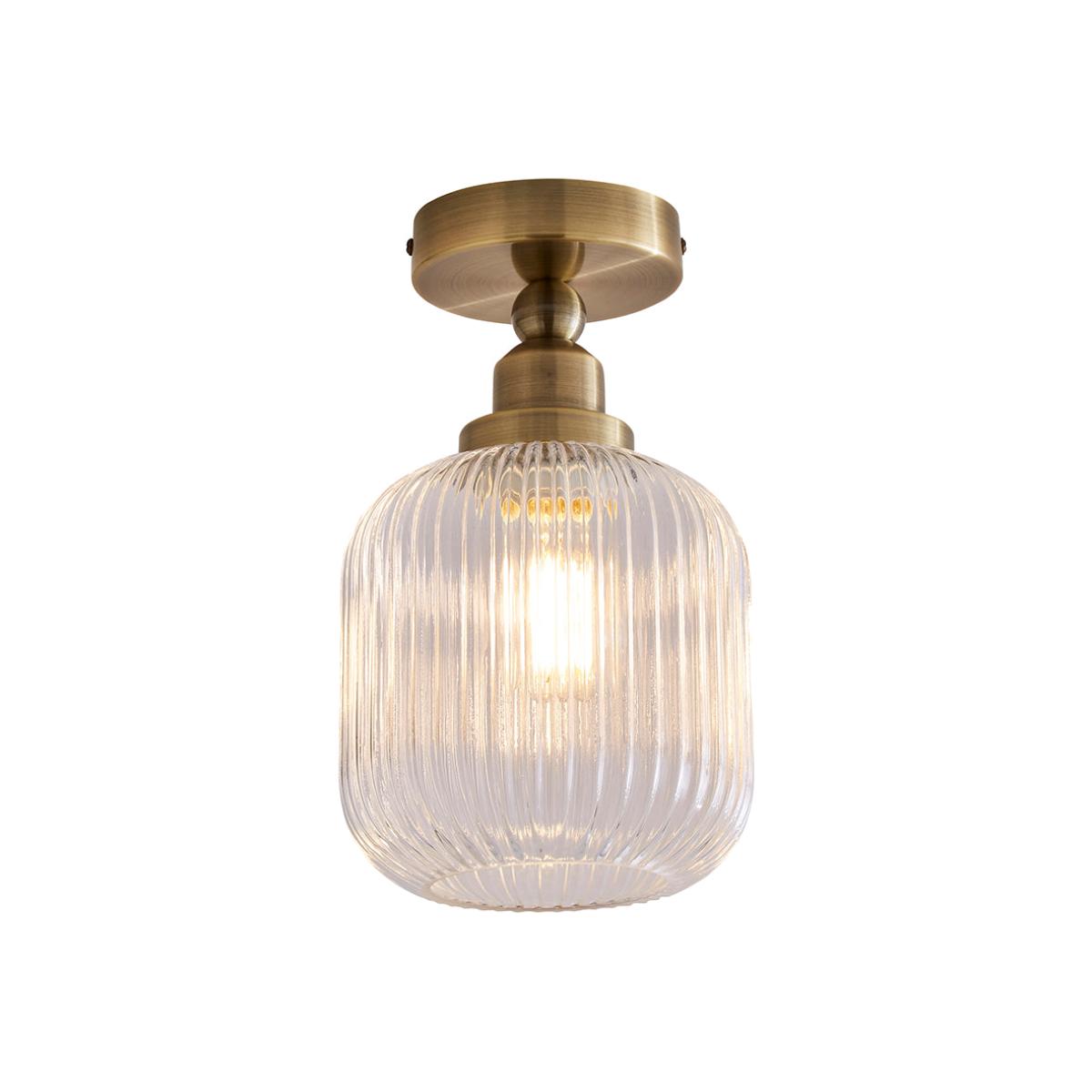 The Riva Antique Brass Semi-Flush Ceiling Light is an elegant, timeless piece exclusive to Pagazzi Design. Featuring a fine ribbed clear glass shade with a gently curved top and bottom profile, it perfectly complements the antique brass metal collar and ceiling plate for a beautifully balanced look. This single-shade flush fitting delivers a classically modern style that works perfectly in smaller rooms, hallways, or staircases. It is dimmable with an external dimmer switch and includes a baton fixing for easy installation. Stylish yet understated, the Riva adds warmth and sophistication to any space.