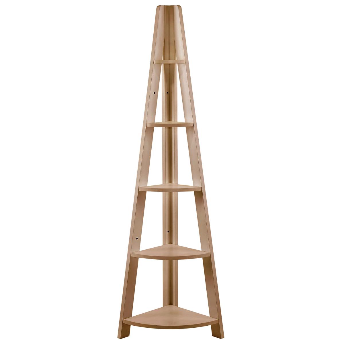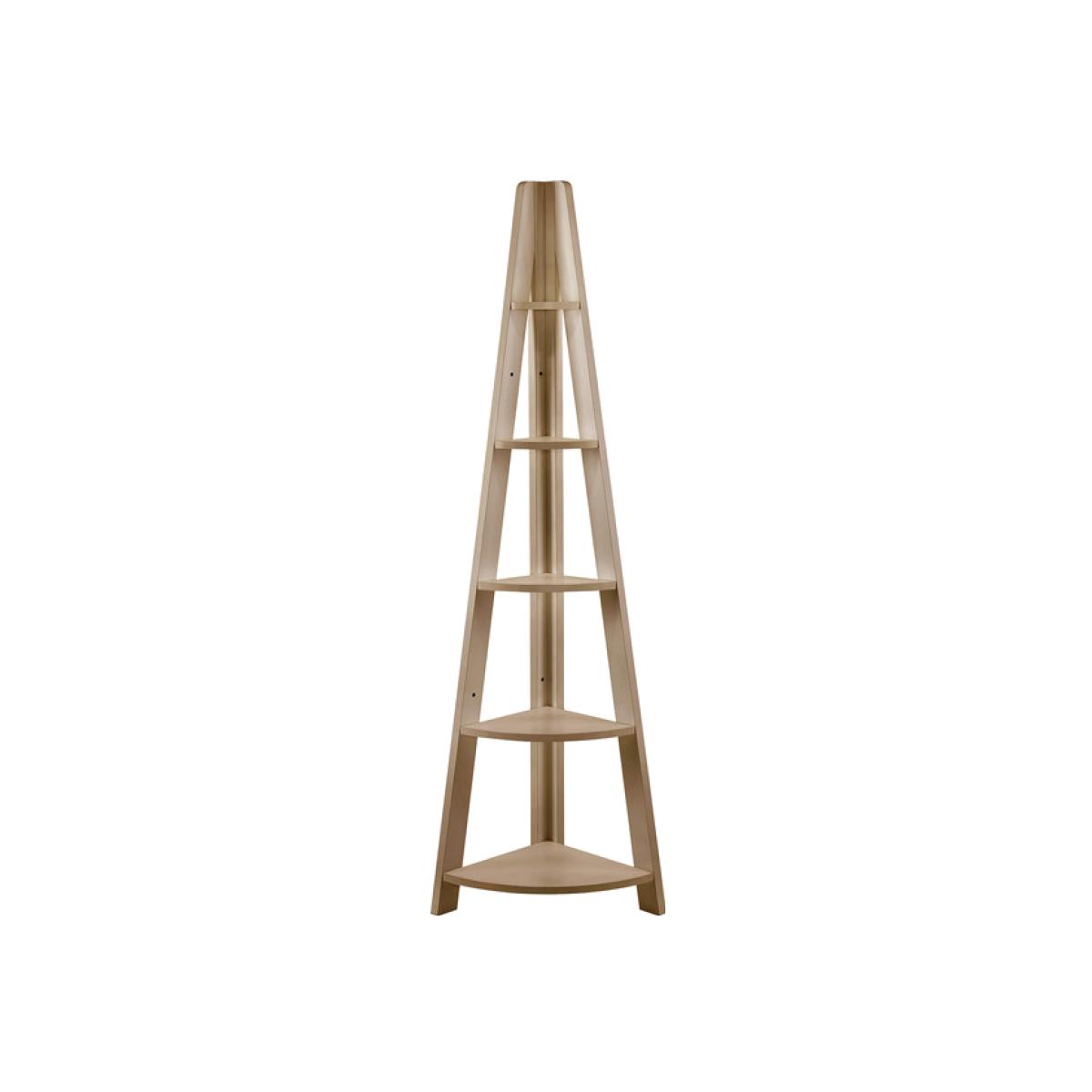 The Riva corner ladder shelving unit is a contemporary design in an oak wood effect finish. The modern pyramid-shaped unit features 5 handy storage shelves in a space-saving design.