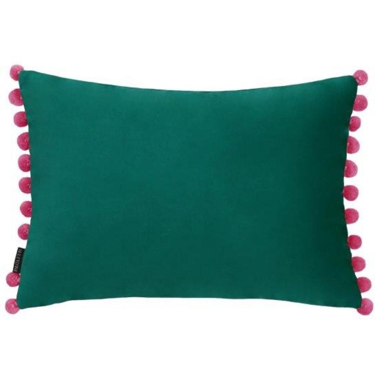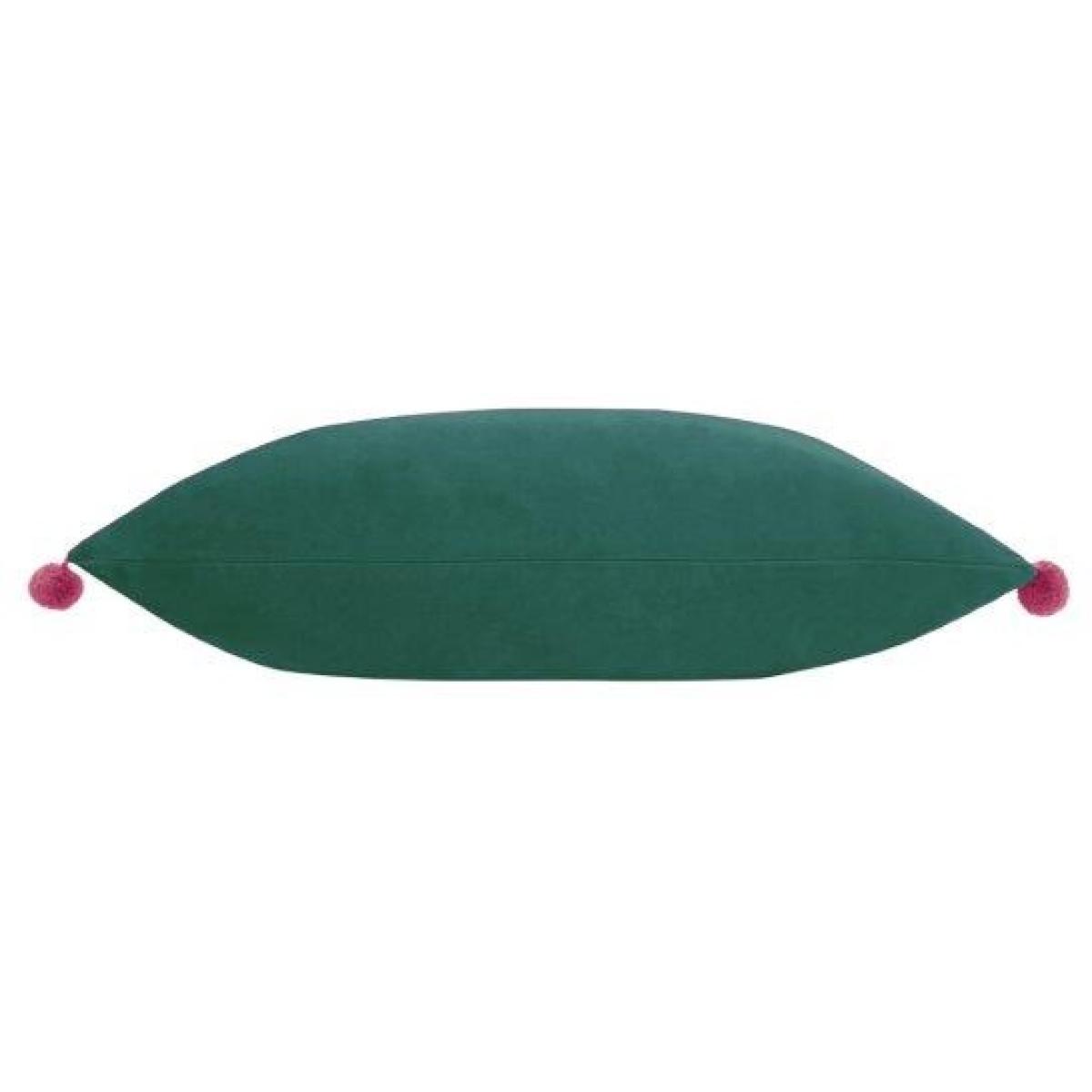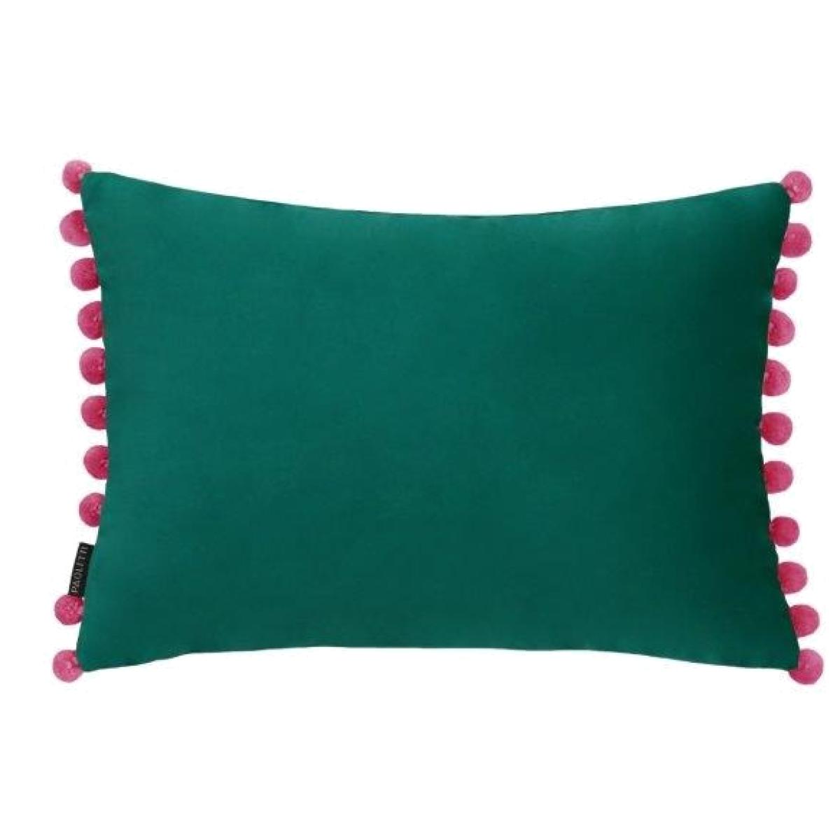 I love this cushion because of its rich teal colour combined with the berry accents, which make it a versatile choice for both contemporary and eclectic interiors. The velvet fabric adds a touch of luxury and textural interest, making it ideal for sofas, beds, or statement armchairs. For styling, try pairing it with neutral or muted tones to let its vibrant hues stand out, or mix with other patterns and colours for a layered, playful look. Practical tip: its 35x50cm size is perfect for adding a pop of colour without overwhelming the space, and the pom-pom trim brings a fun, modern detail that keeps things visually engaging.
