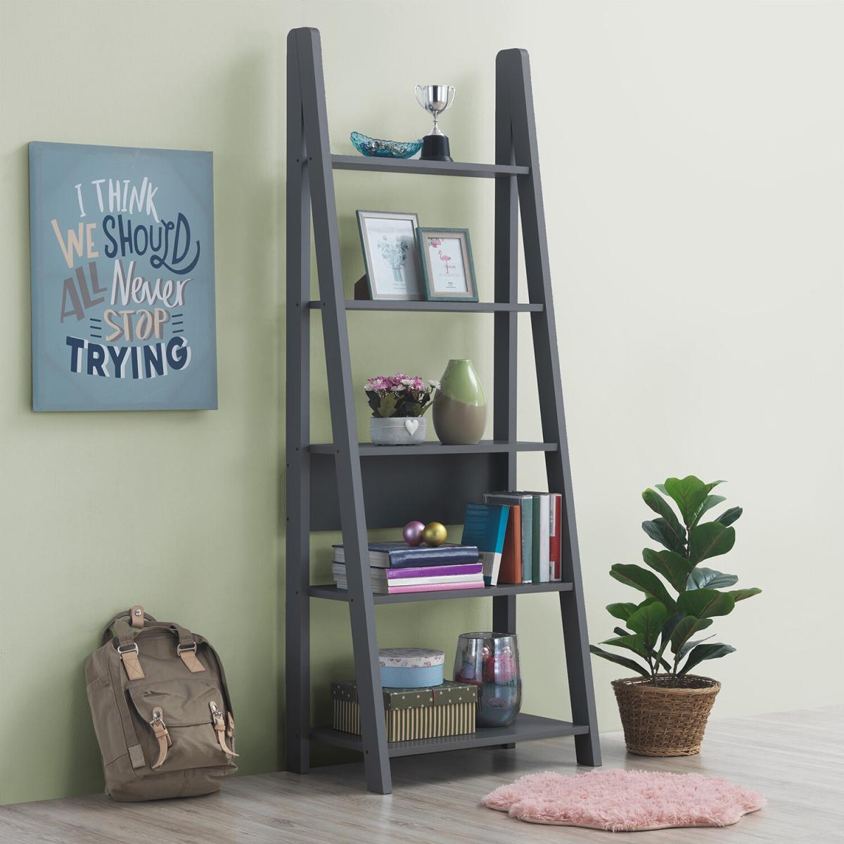 The Riva Ladder Bookcase is a functional and stylish storage unit with a contemporary finish to match any modern décor. The ladder shelving unit features 5 tiered shelves, giving you handy storage for books, DVDs, and decorative items across multiple levels in one space-saving unit.