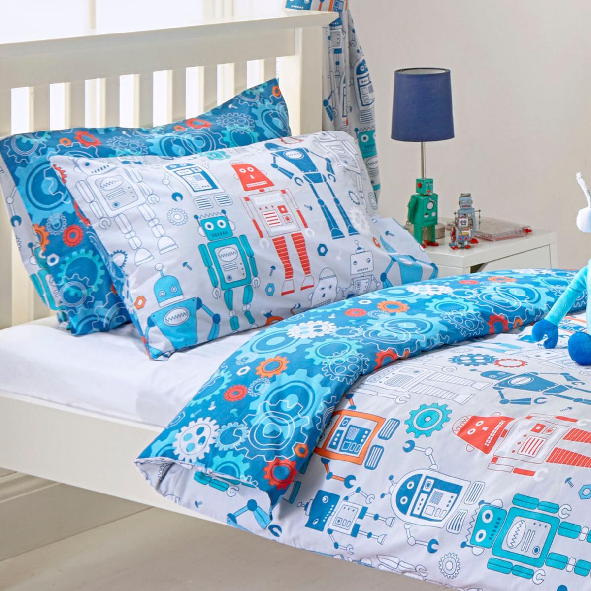 Riva Paoletti Robot Blue Cot Bed Duvet Cover & Pillowcase Set Blue