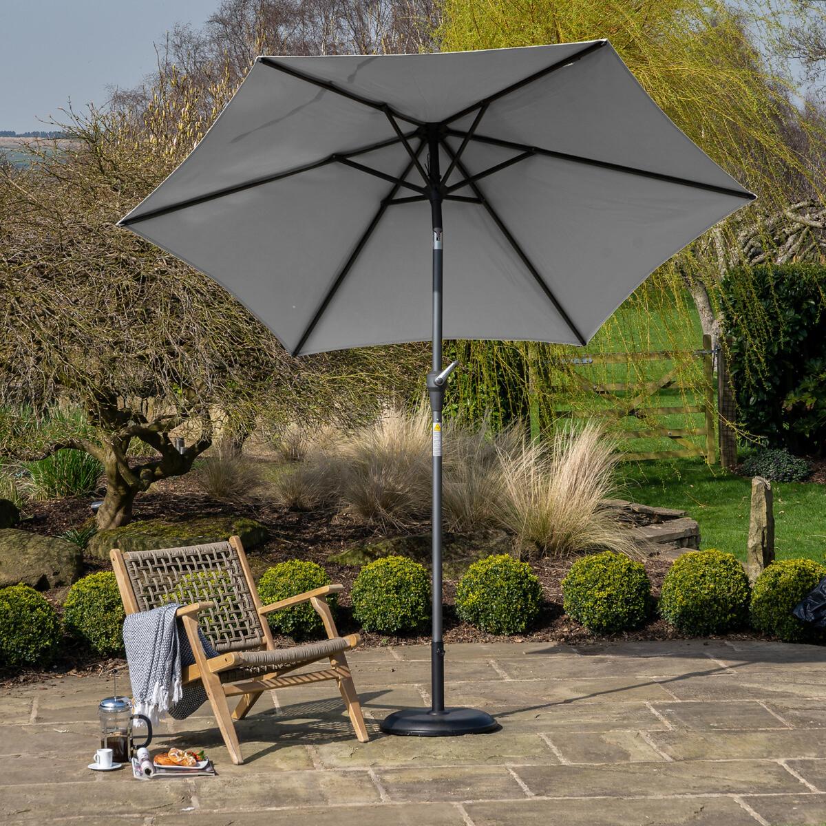The Riva Parasol is available in three sizes (2.5m, 3m and 3.5m) and all four colours including Anthracite, Luna Grey, Taupe and Olive. It features an easy-rotate crank and tension springs that ensure a smooth operation and keep the canopy taught. Its handy tilting system enables you to create the perfect shadow in your garden, patio or balcony. Packaged Dimensions: 154cmx 16cmx 16cm Weight: 6kg. Please note Parasol Bases are sold separately. This item can be delivered to all UK Mainland postcodes with the exception of the following postcodes starting with; AB, BT, DD, IV, KW1-14, PA21-38, PH, TR17-27 & ALL ROI.This product will be dispatched by one of our trusted suppliers. You’ll be contacted by their selected courier about your delivery.