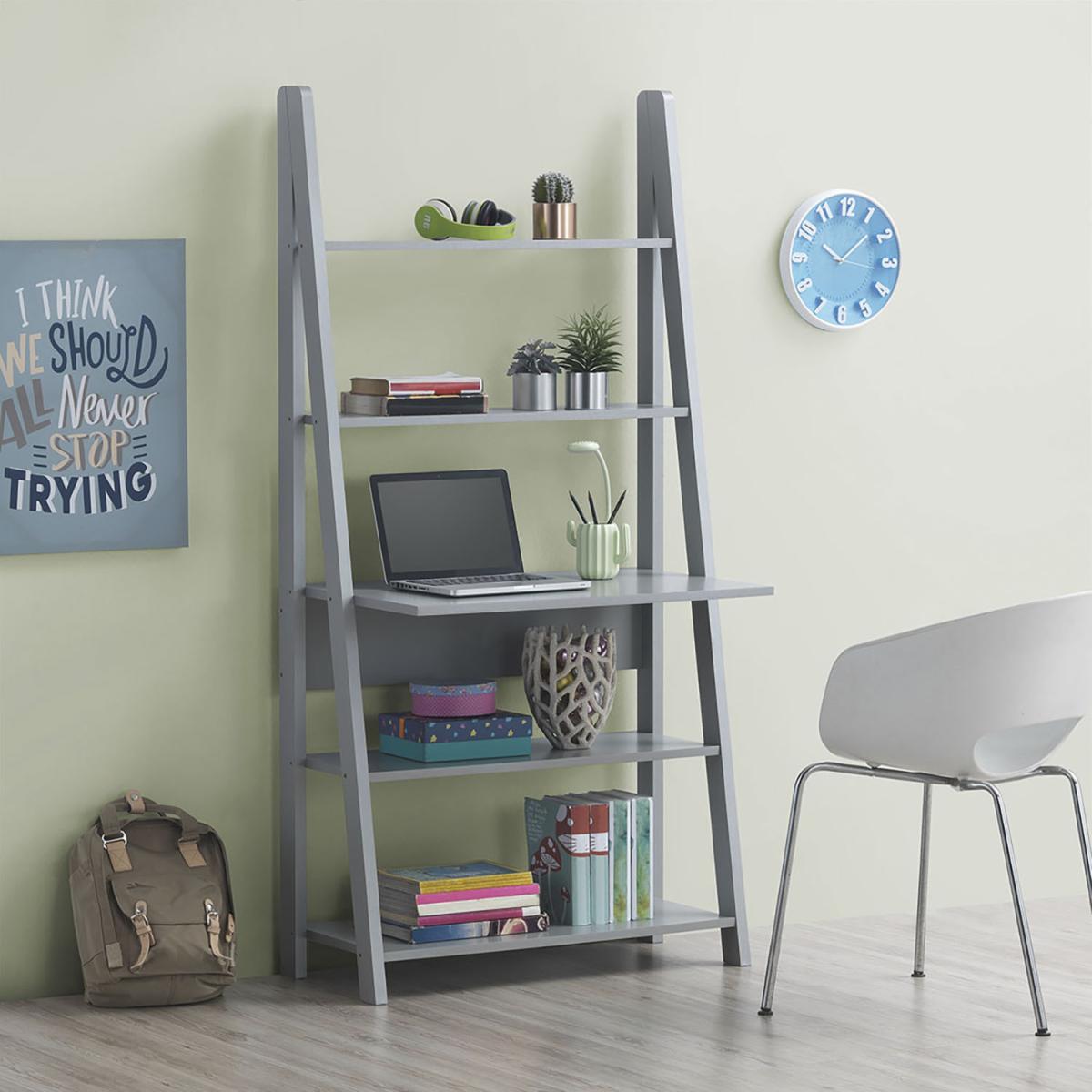 The Riva tall ladder desk is a retro scandinavian design in an oak wood effect finish. Featuring five tiered shelves giving you handy storage in a space saving unit.