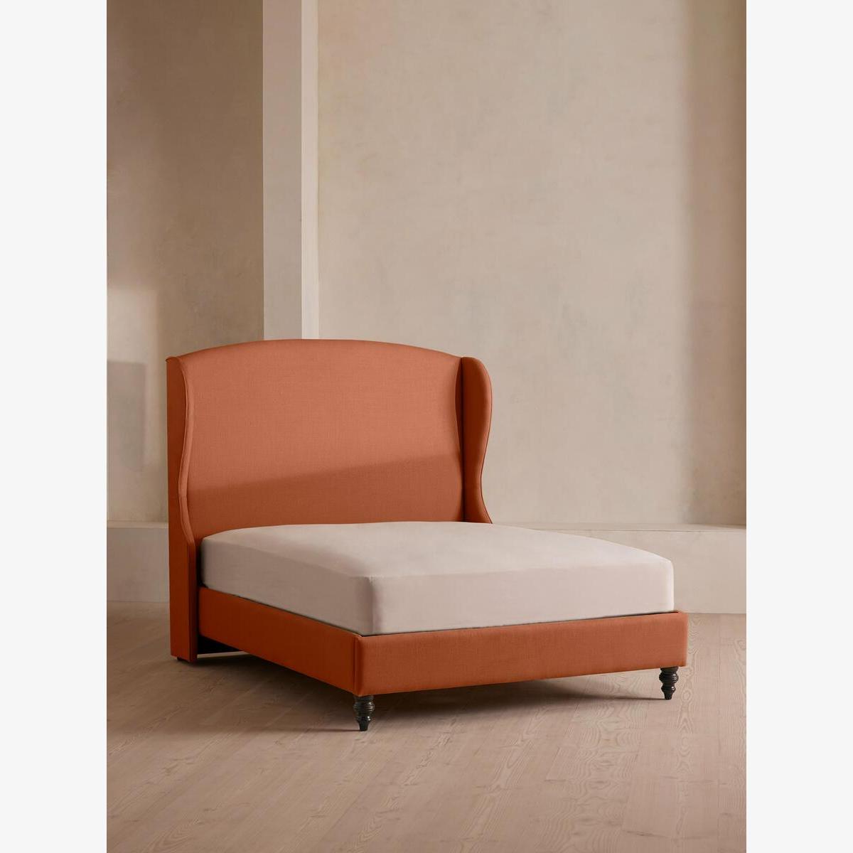 I’m a fan of the Rivas linen bed in that muted rose - it brings just the right amount of warmth without feeling too sweet. The winged headboard works equally well in Scandi-inspired schemes, modern-classic bedrooms or even a relaxed boho look. Pair it with linen or crisp white bedding and add textured throws in natural tones to balance the colour. I’d use brass or black-metal side tables and keep art and accessories minimal so the bed remains the focal point, and the castors mean you can easily reposition it if you fancy a fresh layout.