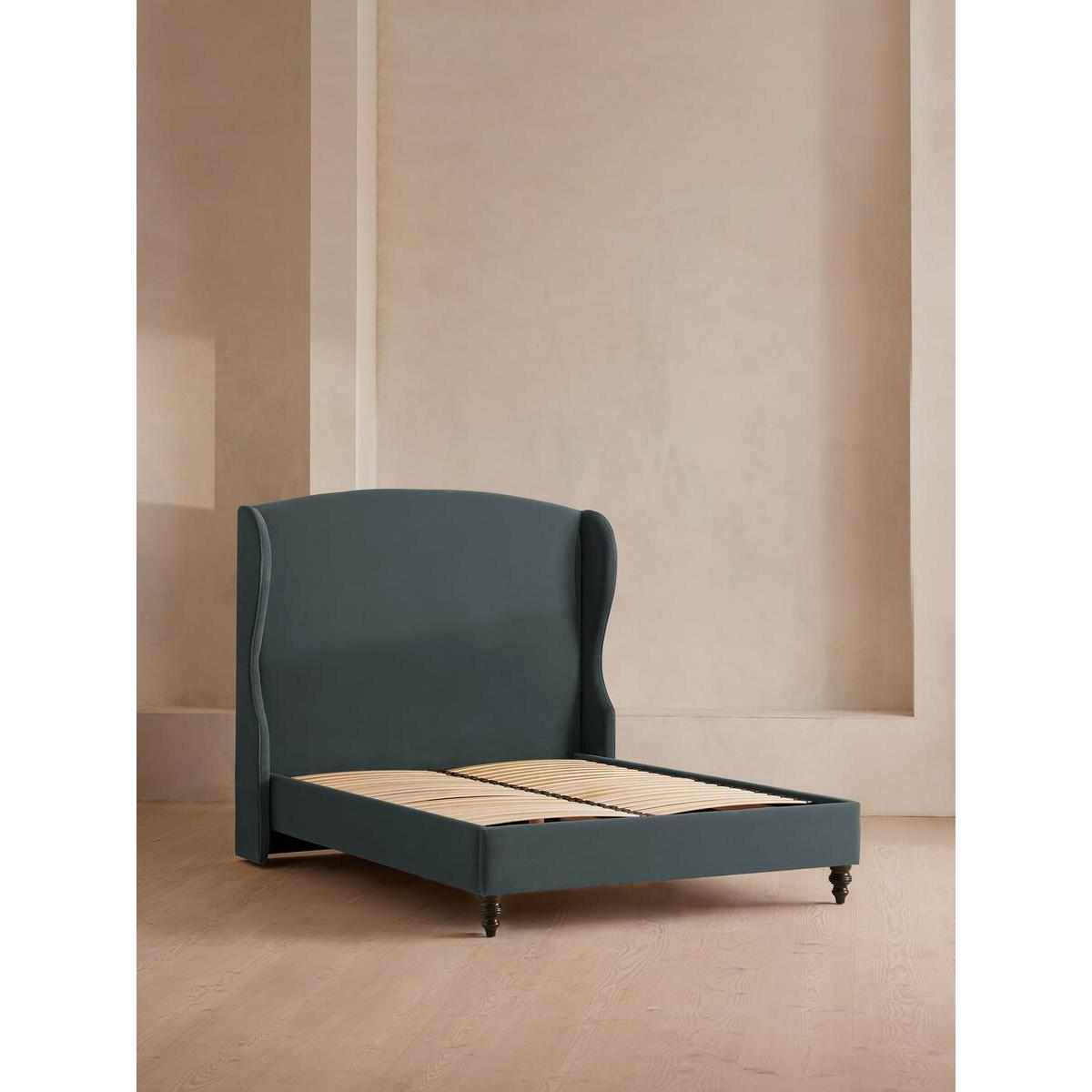 I’m a fan of this Rivas bed for its soft grey-blue velvet - it brings a subtle hit of colour and a tactile feel without dominating the room. The wingback headboard adds lean-in comfort and clean lines, while the turned legs and brass castors give a touch of classic detail. It suits both modern and traditional schemes. Layer crisp white linens with cushions in jewel tones or muted pastels, and drape a chunky throw at the foot. Place a textured rug beneath to anchor the frame, and choose bedside tables in dark wood or black metal to contrast the upholstery. A couple of brass-finish lamps will pick up the castors’ highlights and complete a cohesive look.