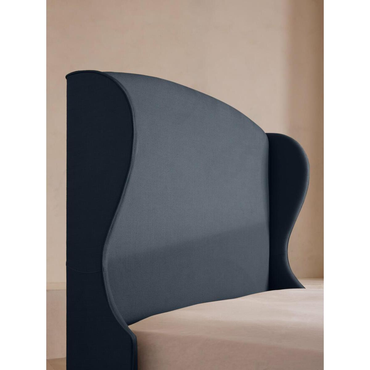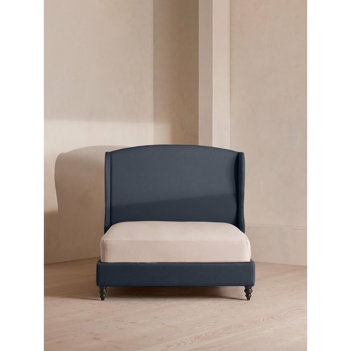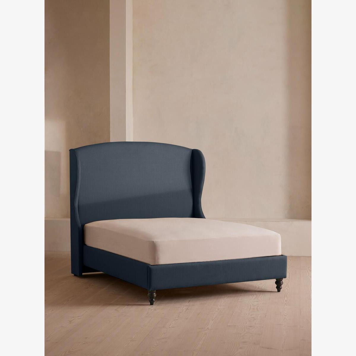 I’m really taken with this Prussian-blue linen bed frame for its quiet blend of structure and comfort. The winged headboard adds a tailored feel that works equally well in modern Scandi, mid-century or transitional schemes. To style it, keep your bedding in soft neutrals - think oatmeal or dove-grey linens - and introduce warm metallics through bedside lamps or picture frames. A low-pile rug in a natural hue will ground the look, while a couple of textural cushions in rust or muted terracotta will lift the colour palette without overpowering that deep blue.