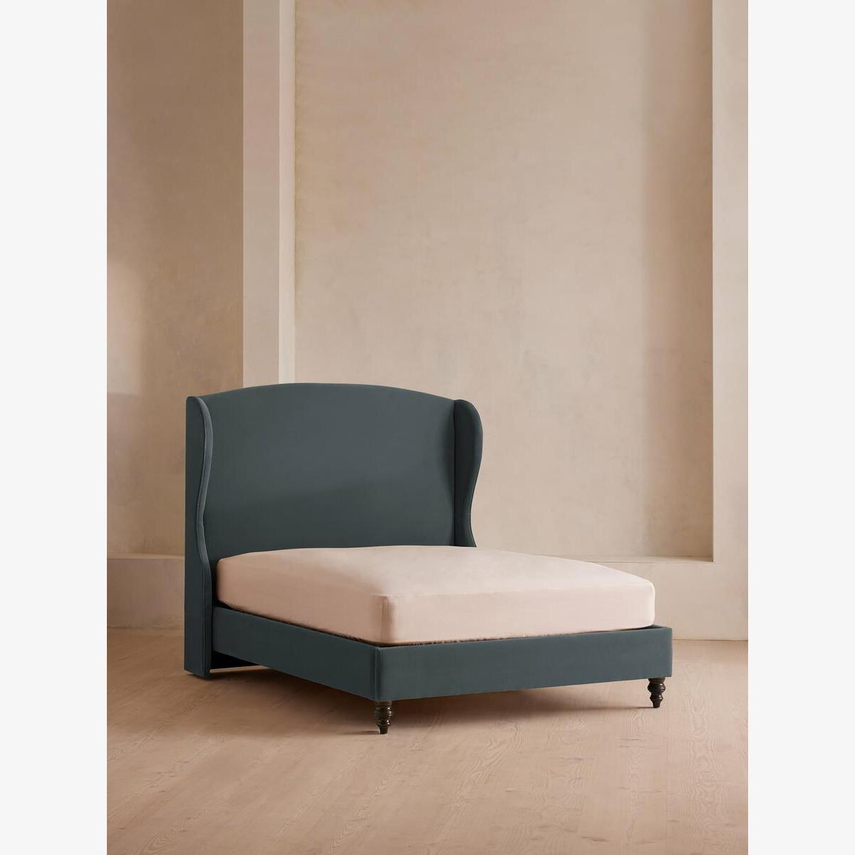 Rivas Bed, King, Velvet, Grey Blue