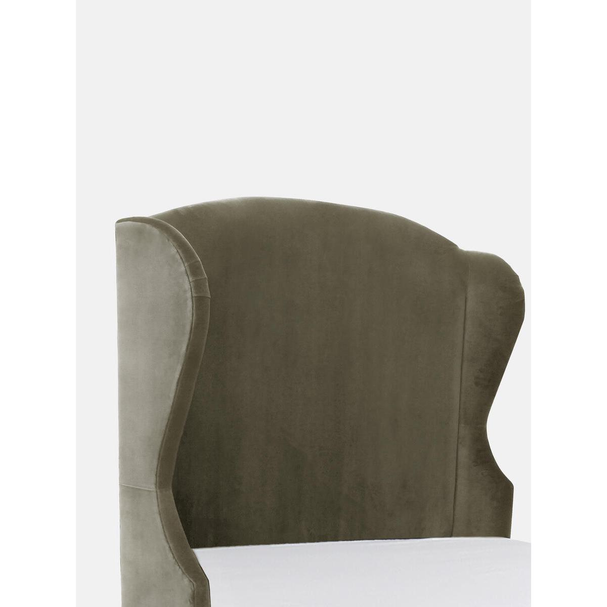 I’m a fan of this lichen velvet bed for its rich, muted green that feels both modern and reassuringly classic. The gently curved, winged headboard adds just enough structure to anchor a room without dominating it, and the turned wooden feet keep the look grounded yet elegant. It works particularly well in schemes ranging from mid-century modern to contemporary country, and it’s easy to layer with neutral linens, tactile cushions in soft greys or warm rust tones, and a lightweight wool throw. Pair with simple brass or black-metal bedside lamps, a natural-fibre rug and pale walls to let the bed remain the focal point while keeping the overall feel relaxed and cohesive.