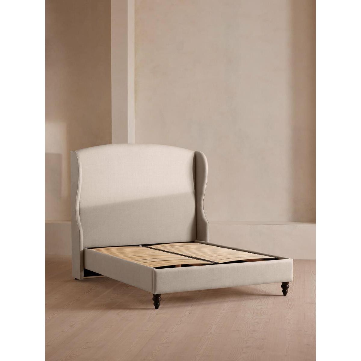 The oversized winged headboard of our Rivas bed helps create a cocooning effect for a good night's sleep. Handcrafted in the UK, it's been upholstered in natural linen and sits on dark, turned hardwood feet. Place in the centre of the room as a feature piece with crisp bed linen and printed textiles to recreate the bedrooms of Soho House Barcelona. Super King-size bed Handcrafted in the UK Oversized winged headboard Upholstered in 100% linen Available in other fabrics and colours Turned hardwood feet Inspired by Soho House Barcelona