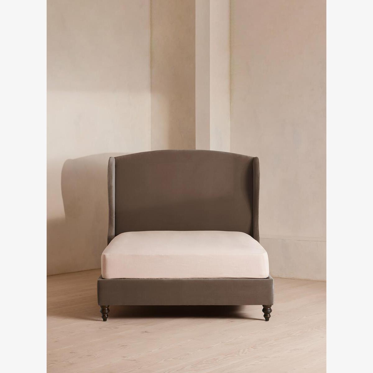The oversized winged headboard of our Rivas bed helps create a cocooning effect for a good night's sleep. Handcrafted in the UK, it's been upholstered in rich velvet and sits on dark, turned hardwood feet. Place in the centre of the room as a feature piece with crisp bed linen and printed textiles to recreate the bedrooms of Soho House Barcelona. Super King-size bed Handcrafted in the UK Oversized winged headboard Upholstered in cotton velvet Available in other fabrics and colours Turned hardwood feet Inspired by Soho House Barcelona