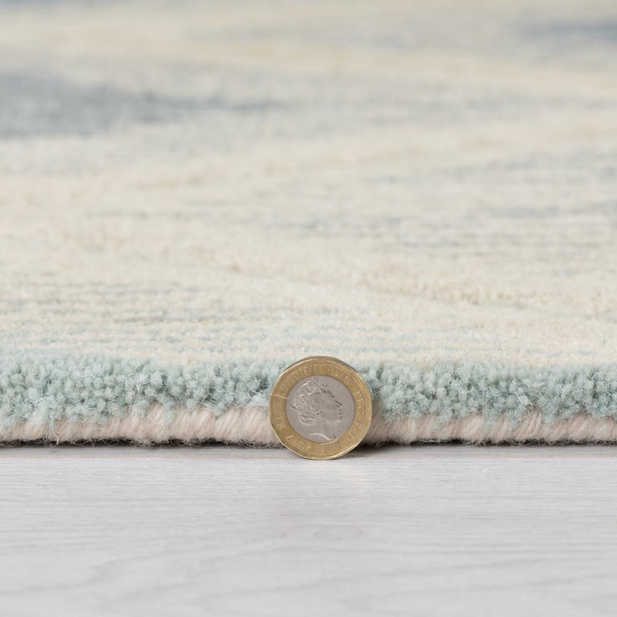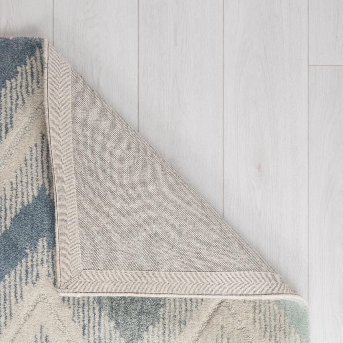 Create a calming oasis in your home with tranquil blues and unrefined-geometrics on the Riven Wool rug. Hand-tufted by skilled rug artisans in India, this rug is densely woven in 100% wool to maximise warmth and comfort underfoot. We love using the blue shades on the Riven Wool rug to create a refreshing look in bedrooms and living rooms. Don't forget to buy our handy anti-slip mat,. Here,. Available in a range of sizes. This is a dense hand-made rug. When opening, re-roll your rug pile out and leave in a warm room for 24 hours before putting in place, this will help to reduce wrinkles and curling from packing. Do not pull any loose threads, please cut them carefully with scissors to remove. Avoid prolonged exposure to direct sunlight as this may cause fading of the colour. Turn your rug regularly to ensure even wear and to reduce pressure marks from furniture. Wool fibres may shed when new and during use, this is a characteristic of this product and is not a defect and should reduce with normal use and regular vacuuming. Before using any cleaning products on your rug, test on an inconspicuous area first to ensure it does not affect the colour. Clean spills immediately by blotting with a clean dry white cloth - do not rub as this may stain the fibres. Vacuum your rug regularly to remove everyday dirt, we recommend the use of a suction type vacuum cleaner as a rotating vacuum brush can cause damage to the pile surface. We recommend the use of an anti-slip mat beneath your rug to prevent it from slipping and sliding out of place. Latex is used on the back of this rug. Please do not leave babies or young children unsupervised on this rug.
