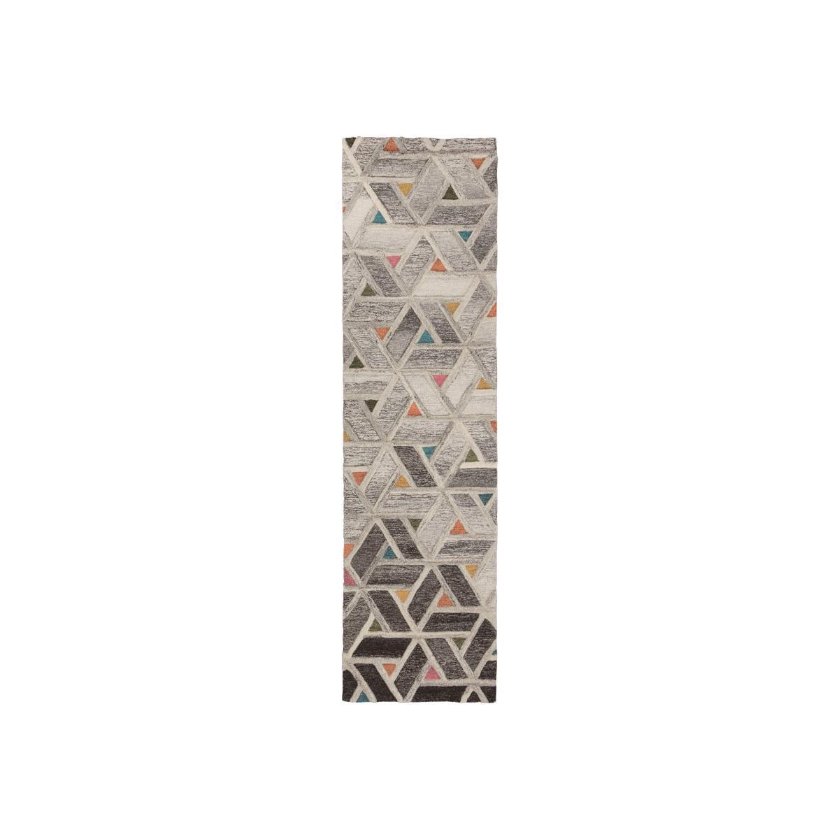 Introduce a contemporary element to your home décor with the Moda River Runner, featuring beautiful bold colours with intricate hand carved detailing that enhances the bold geometric design, making it perfect for adding a statement piece to your living space. This is a dense hand-made runner. When opening, re-roll your runner pile out and leave in a warm room for 24 hours before putting in place, this will help to reduce wrinkles and curling from packing. Do not pull any loose threads, please cut them carefully with scissors to remove. Avoid prolonged exposure to direct sunlight as this may cause fading of the colour. Turn your runner regularly to ensure even wear and to reduce pressure marks from furniture. Wool fibres may shed when new and during use, this is a characteristic of this product and is not a defect and should reduce with normal use and regular vacuuming. Before using any cleaning products on your runner, test on an inconspicuous area first to ensure it does not affect the colour. Clean spills immediately by blotting with a clean dry white cloth - do not rub as this may stain the fibres. Vacuum your runner regularly to remove everyday dirt, we recommend the use of a suction type vacuum cleaner as a rotating vacuum brush can cause damage to the pile surface. We recommend the use of an anti-slip mat beneath your runner to prevent it from slipping and sliding out of place. Latex is used on the back of this runner. Please do not leave babies or young children unsupervised on this runner.