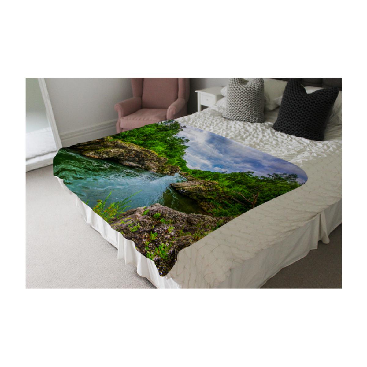 I love this one because of its striking natural print, which is versatile enough to elevate both contemporary and rustic interiors. It pairs particularly well with neutral-toned bedding or cushions, allowing the lush greens and natural landscape to be the focal point. Practical styling tips include draping it casually over a sofa or armchair for a cosy, inviting feel, or layering it on a bed for added texture without overwhelming the space. Its vibrant yet calming design makes it a great piece for bringing a splash of nature indoors, especially in rooms with minimal decor that could benefit from a natural focal point.