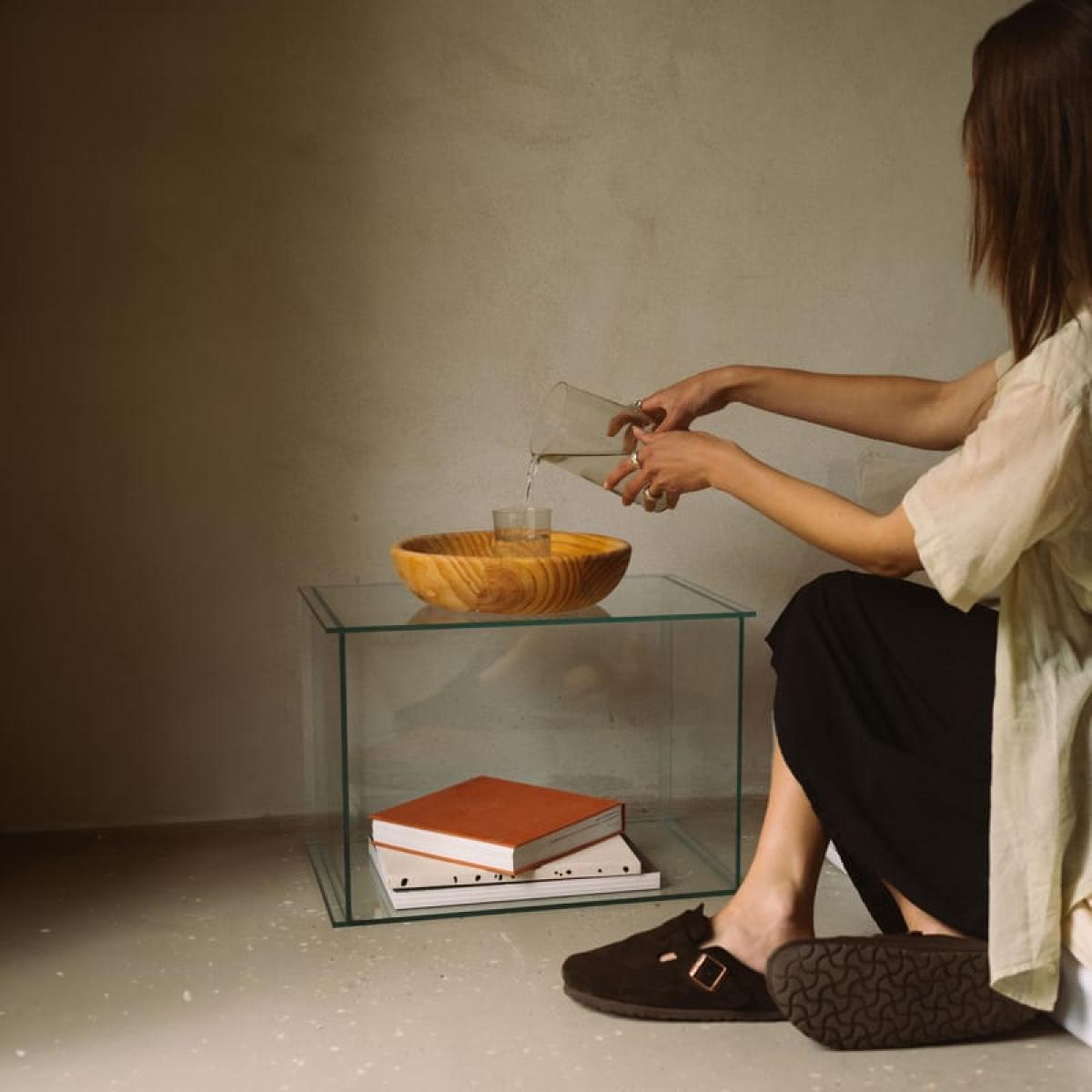 I love this glass box because its clean, transparent design makes it incredibly versatile and perfect for modern interiors. It works well in minimalist schemes, adding a subtle touch of elegance without overwhelming the space. Stylistically, it can be styled with small sculptures, plants, or books on top to create visual interest, while its transparent nature keeps the overall look light and airy. Practical tip: use it in bedrooms or lounges as a side table or nightstand, and consider placing it in front of a coloured or textured backdrop to highlight its sleek silhouette. Its simplicity allows it to blend seamlessly with various decor styles, from contemporary to Scandi.