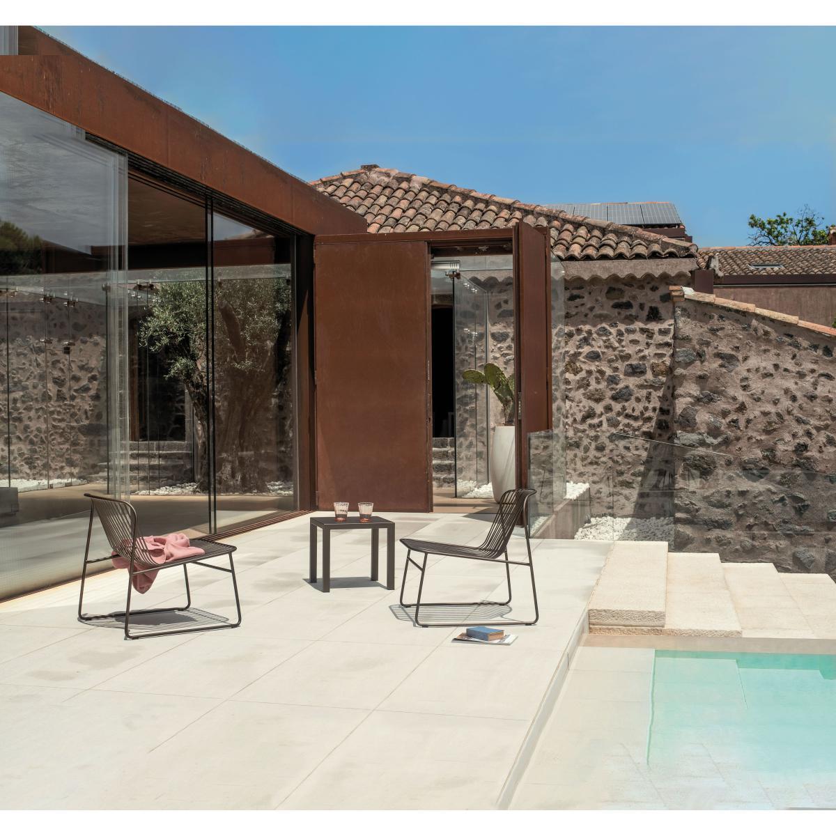 A shape that is both simple and elegant for the collection of Riviera metal chairs and armchairs. The fine tubular structure with sinuous curves supports a seat made up of flat steel bands. The airy outline appears like a graphical, minimalist and sophisticated sign. The retro grace of this collection is modernised by the use of modern manufacturing materials and techniques. Stackable and hard-wearing, the Riviera easy chair is suitable for both private and professional spaces (bars, restaurants, etc). With more than fifty years’ experience in metalworking, Emu expresses its style in gardens and terraces all around the world. Emu creations have become icons in the world of "made in Italy" design and quality.