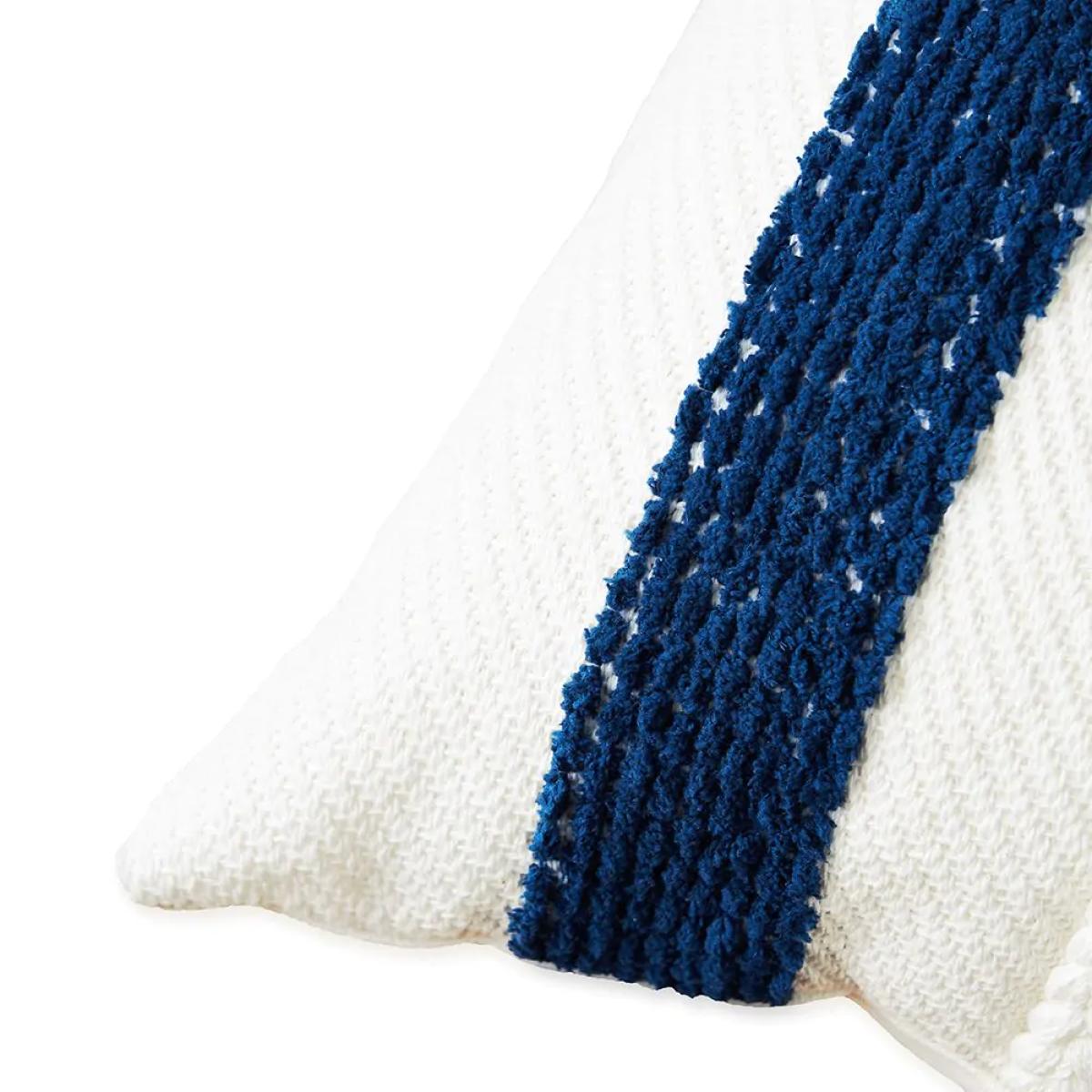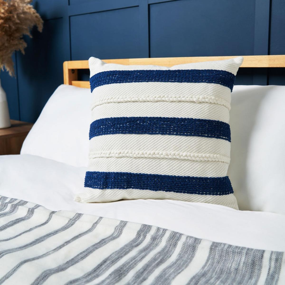 The Riviera Stripe Cushion with Fringe in Navy adds a tasteful and coastal-inspired addition to bring a touch of the seaside into your home. This navy cushion seamlessly integrates within lighter colour schemes, making for the perfect choice for infusing a maritime charm into your living space. The embroidered finish of this throw cushion is a stunning way of adding a different texture to your living room or bedroom decor.