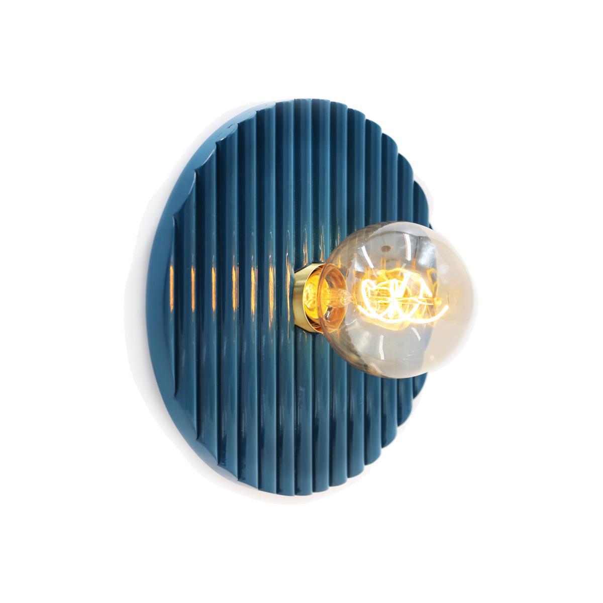 Sarah Lavoine's Riviera collection features an old-fashioned Art Deco aesthetic, inspired by the French Riviera of the 1920s. This minimalist round lacquered rattan wall lamp mixes natural material and warm colour. Evoking the 1960s and 1970s, rattan gives this creation a vintage look. This retro feel is counterbalanced by its simple, modern lines, clever colour and very chic brass socket. Its vertical grooves have a contemporary, feminine and graphic serrated look. The Riviera wall light offers a subtle blend of elegance and relaxation that fulfils our need for something different mixed with nostalgia. The shadow cast by the round silhouette forms a kind of sun on the wall. This wall lamp is handmade in Spain.