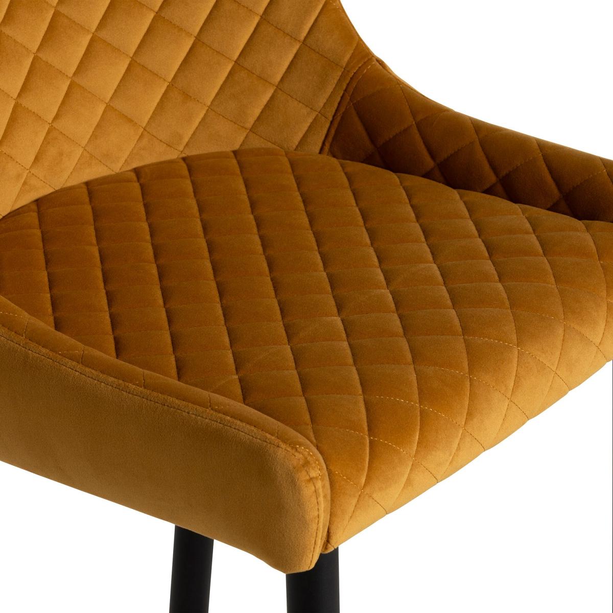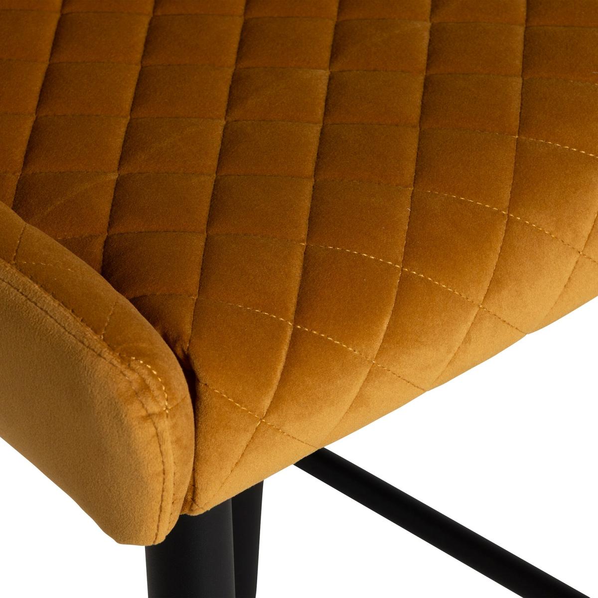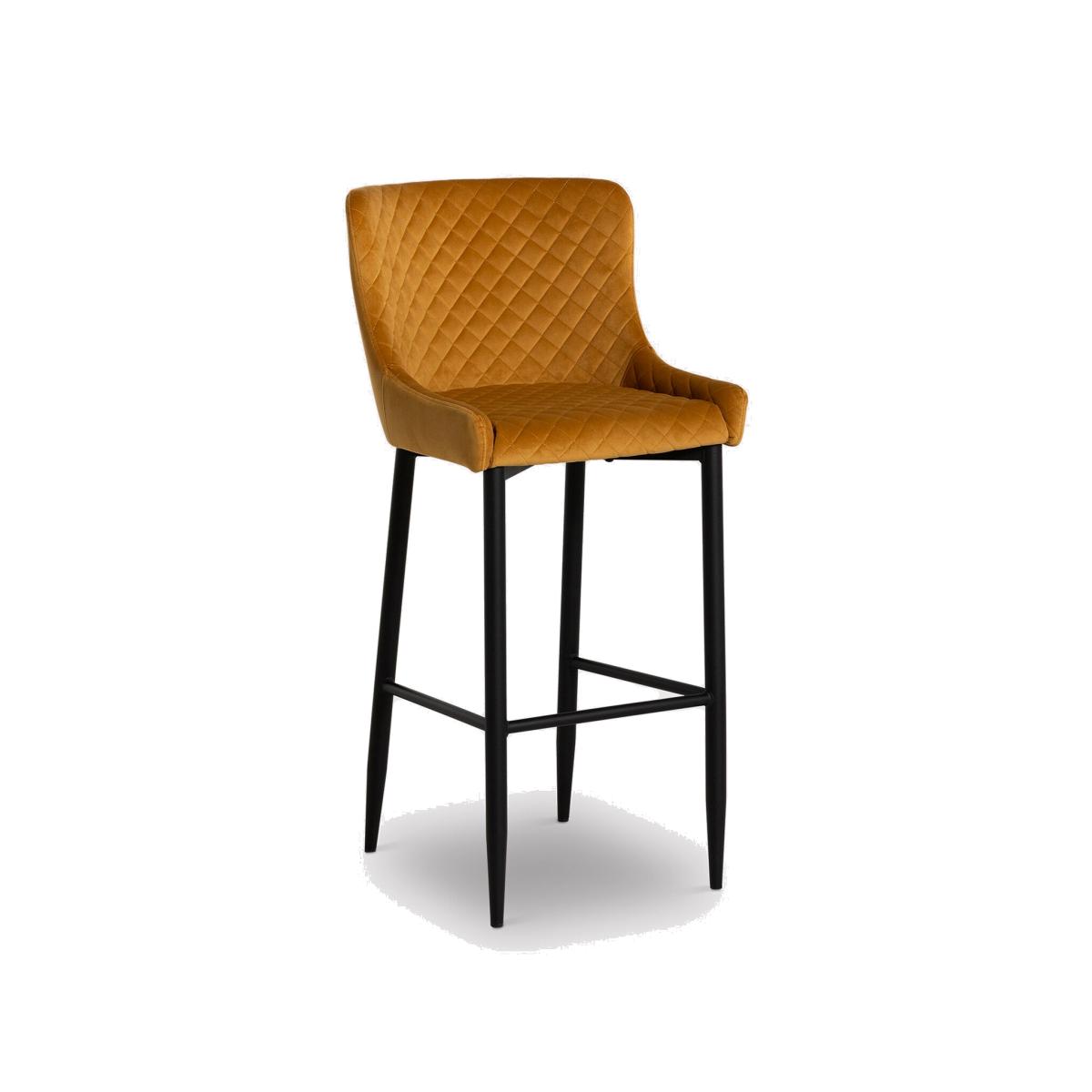 I love this barstool for its vibrant, statement colour and its mix of contemporary style with a touch of warmth. The orange velvet offers a luxe feel, making it ideal for kitchens, bar areas, or standalone seating in dining spaces where a pop of colour is welcome. It works particularly well in eclectic, modern, or retro interiors, especially when paired with neutral or monochrome schemes to let the upholstery really stand out. Styling tips include keeping the surrounding environment minimal to highlight the bold fabric, or balancing the look with some brass or black-metal accents for a sleek finish. It's practical too, as velvet adds a subtle texture, giving your space an inviting, tactile quality.