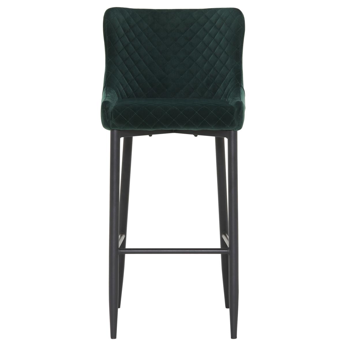 The Rivington bar stool in dark green velvet provides a luxe, stylish appeal that is sure to add a modern vibe to your space. Signature sloping arms provide the Rivington Fabric Bar Stool, Dark Green Velvet with the ideal shape for comfortable dining, allowing you to get right beneath your bar area. With black metal pointed legs and a stunning selection of fabrics to choose from, this bar stool is certainly eye-catching and its feature footrest makes for a sturdy design that is also easily accessible.