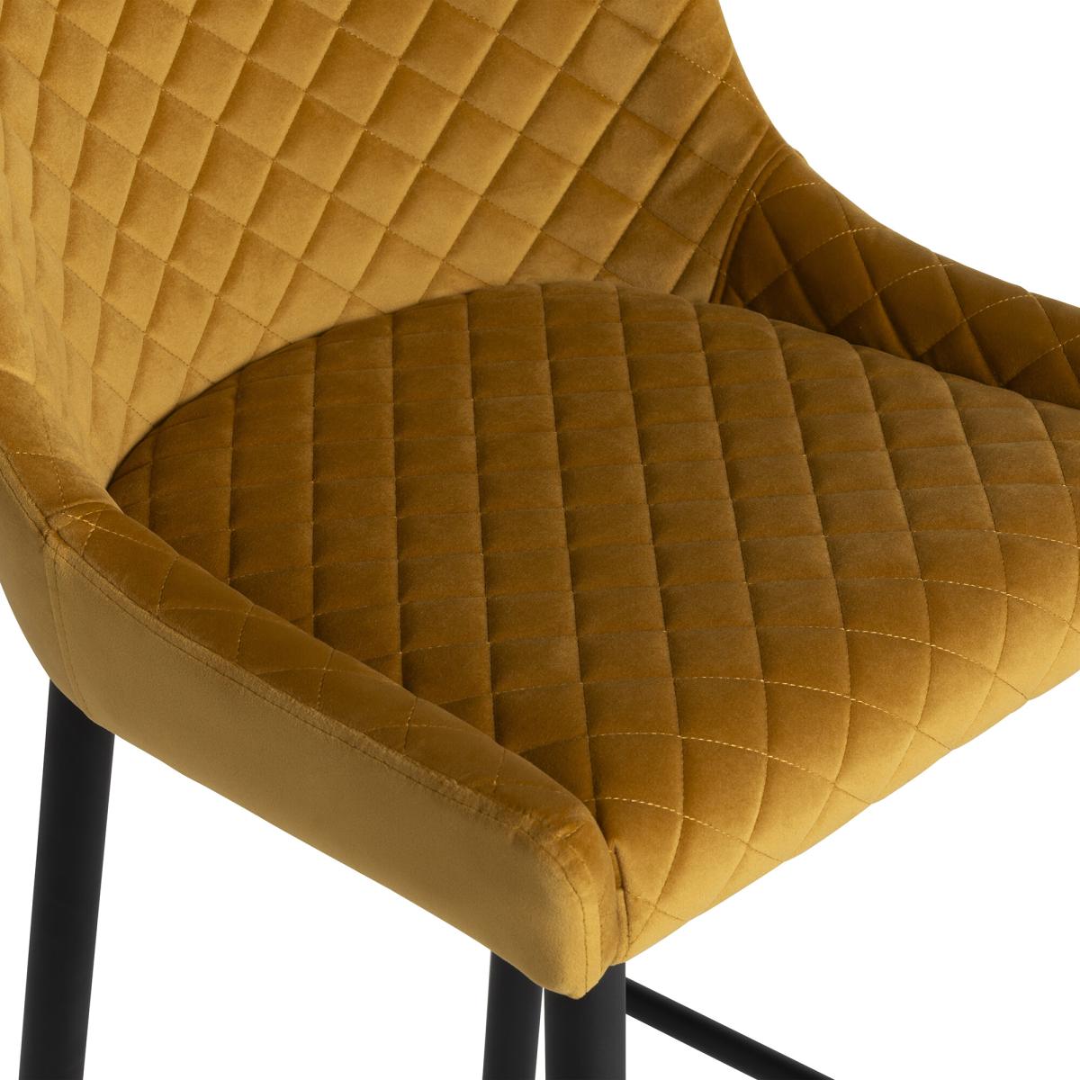 The Rivingtonnbsp;Golden Velvet Quilted Bar Stool is a vibrant and sophisticated addition to your dining space. Adorned in plush velvet with a captivating quilted stitch pattern, this bar stool combines style with comfort effortlessly. Its fixed foam seat cushion ensures consistent support, maintaining its shape over time. Supported by sleek metal legs finished in black powder coating. A perfect blend of form and function, it promises to improve your kitchen with its vibrant hue and elegant design