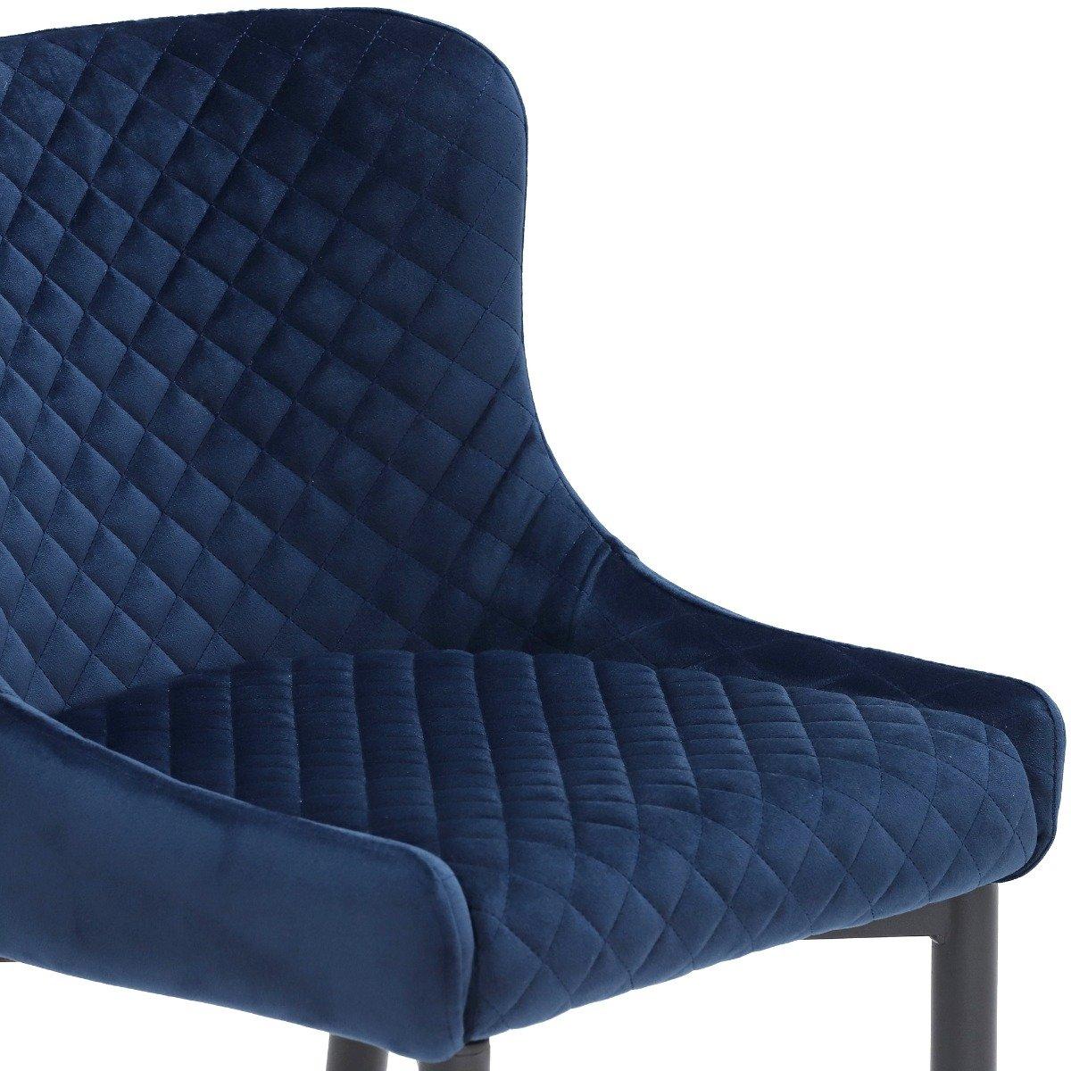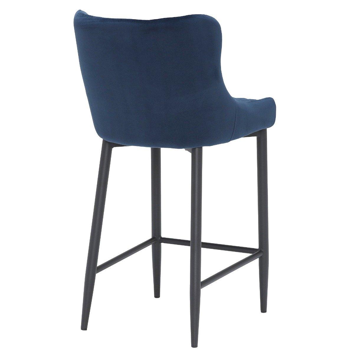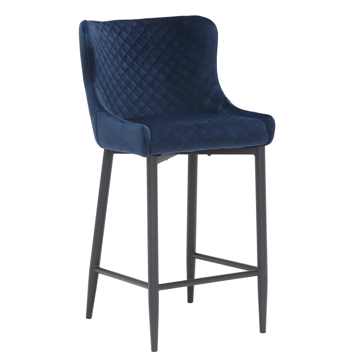 The Rivington counter stool seamlessly combines comfort, convenience, and contemporary style, making it an ideal addition to any dining space. Designed at the perfect height for kitchen islands or breakfast bars, it offers quality casual seating without sacrificing space. The slim black metal legs create an open feel, while the quilted blue velvet seat exudes luxury. With a curvaceous backrest and supportive foam cushioning, this stool provides an elevated level of comfort. The fixed foam seat cushion ensures a consistent and enduring seating experience.