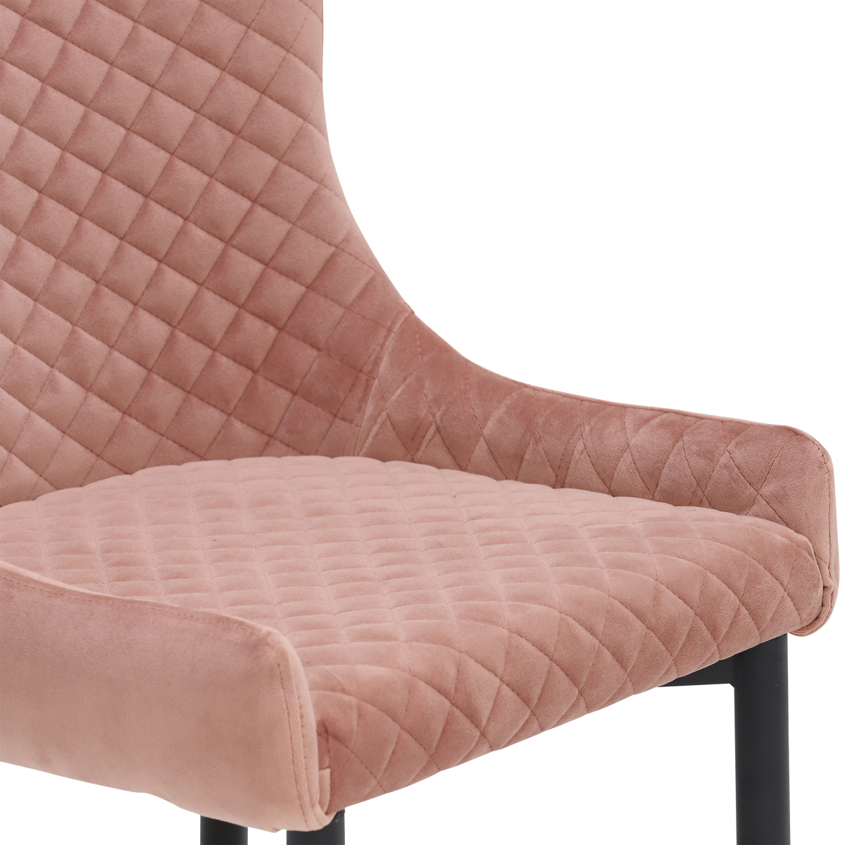 The Rivington dining chair combines classic tub styling with a modern twist. Beautifully upholstered, the Rivington is both luxurious and sophisticated with its quilted back adding visual delight while the internal foam padding ensures lasting seating comfort.?Sloping arms, low enough to allow for unidirectional seating, makes chatting away with your family and guests easy and comfortable. Complete with sturdy pointed black metal legs, the Rivington dining armchair is sure to adorn your dining space beautifully and add lots of contemporary appeal.?