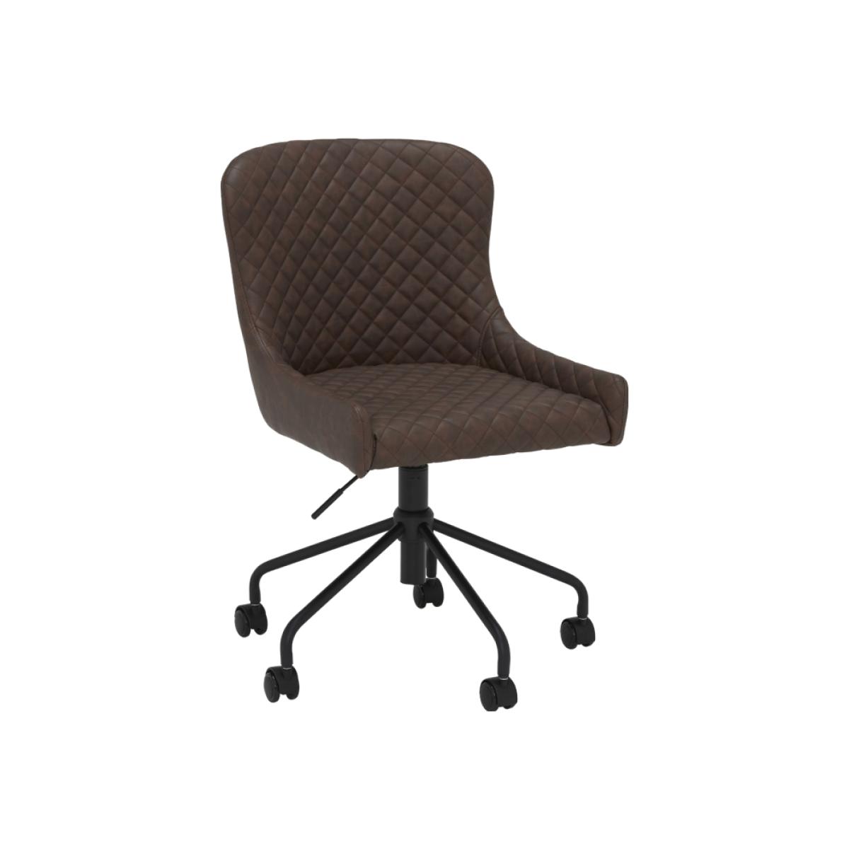 Design. The Rivington Occasional Work Chair offers delightful luxury and comfort, ideal for your home office. The beautifully upholstered seat comes in coffee brown, a versatile colour which will match a range of interior décor and colour schemes. Sloping arms, low enough to allow for unidirectional seating, makes working at a desk easy and comfortable. The Occasional Work Chair is completed with an adjustable swivel base to accommodate to your height, and rests upon five nylon wheels, two featuring a breaking function.