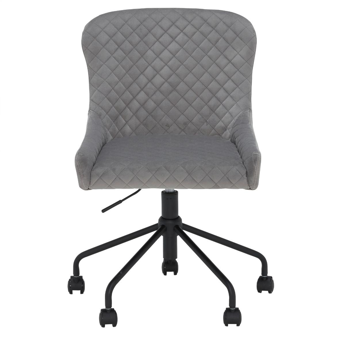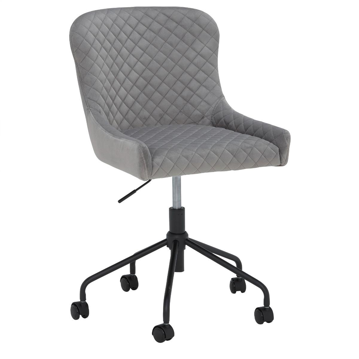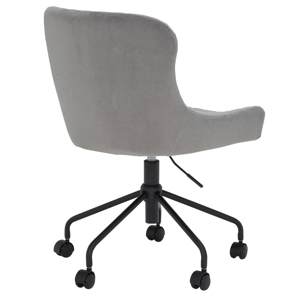 Design. Mixing contemporary design with an essence of glam, the Rivington Occasional Work Chair is a stunning component for your workspace. The beautifully upholstered velvet is soft to the touch and easy to style with its versatile light grey colour. A curved backrest provides support and low arms allow full mobility when working at your desk. The Occasional Work Chair also features an adjustable swivel base which adjusts to each individual's height, and 2 nylon wheels featuring break functions.