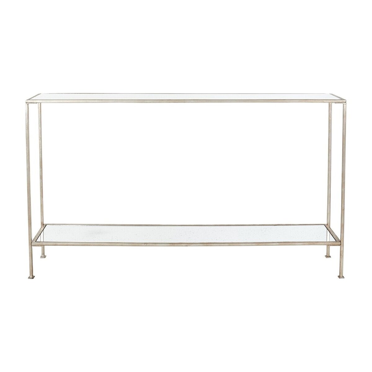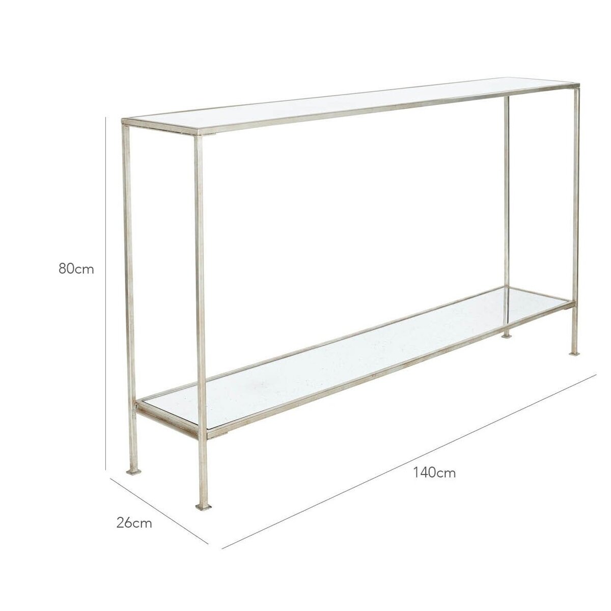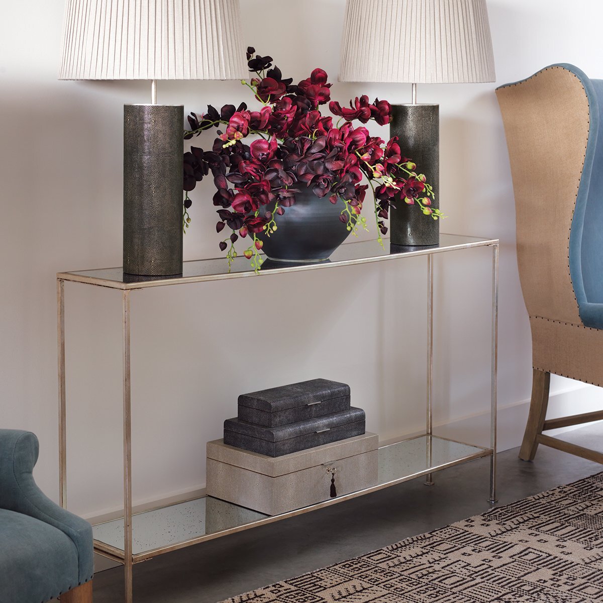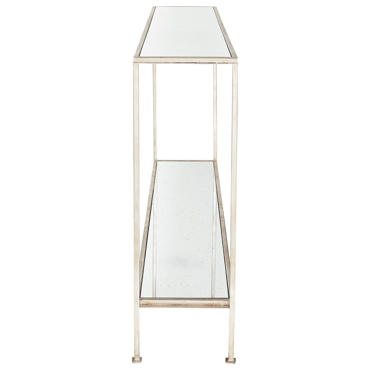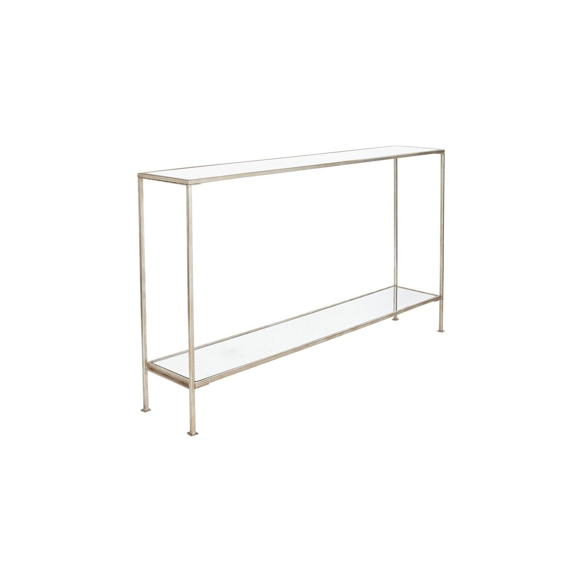 Our narrowest console yet, the Rivulet Console Table will suit both traditional and modern homes. Featuring antiqued mirrored shelves characterised by a black speckled effect on the mirror glass, set in an elegant antiqued silver-leafed frame, it will bring a lightness to any scheme. At just 26cm wide, its very narrow profile makes it invaluable where space is limited. Ideal for a hallway or behind a bed as a shelf for lamps, books or photo frames. A small console andside tableare also available.