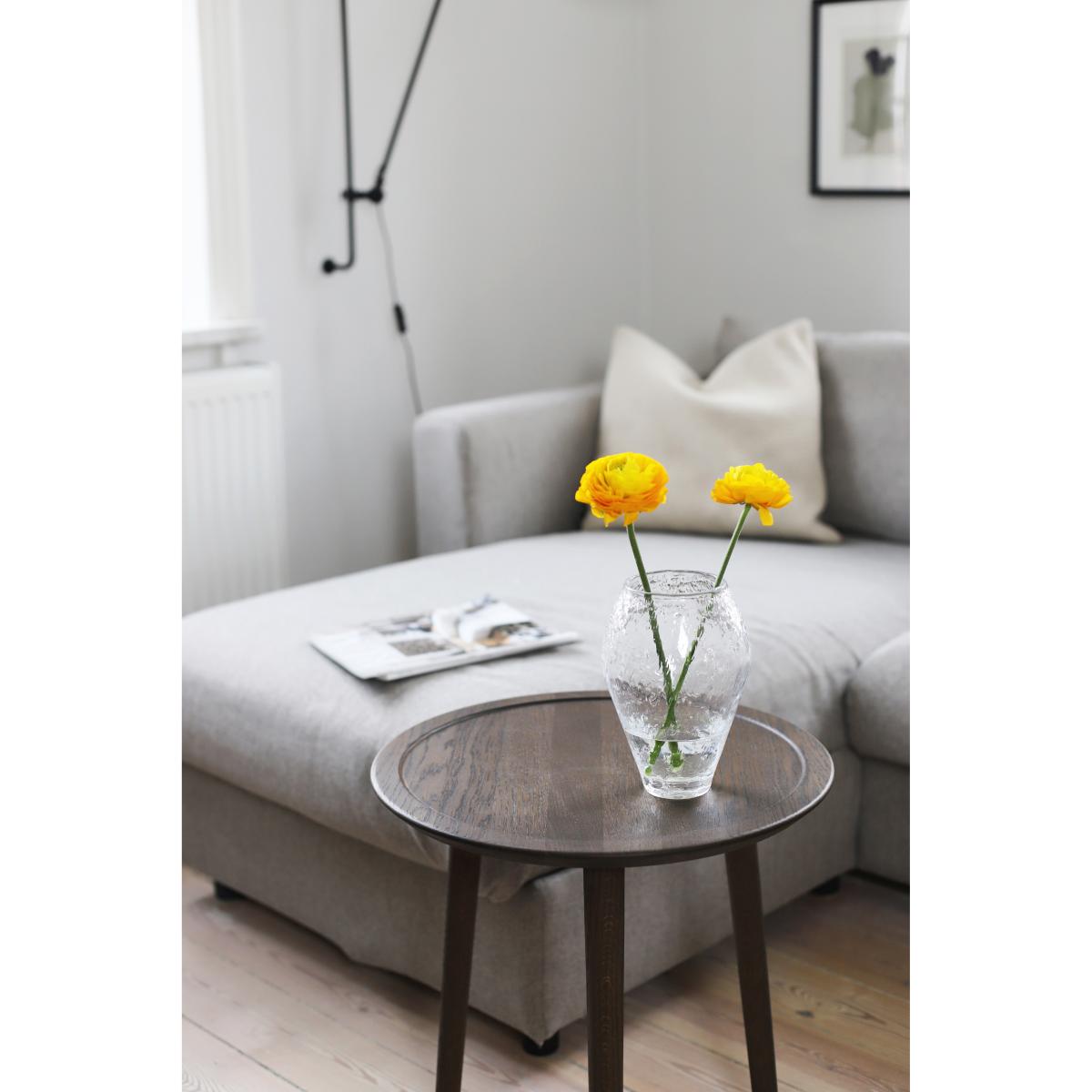 I love this small clear vase because of its subtle texture and versatility. The crushed glass finish adds a tactile, contemporary edge that works well in modern, minimalist, or eclectic interiors. It’s ideal for showcasing a few stems of seasonal flowers or even a sprig of greenery, making it a simple yet effective centrepiece. Style it on a windowsill, a bookshelf, or alongside other glassware to create a cohesive look. For practical tips, consider pairing it with softer hues or metallic accents to highlight its clarity, or layer it with other textured pieces for added visual interest. Its compact size makes it perfect for smaller spaces or as part of a curated tabletop arrangement.