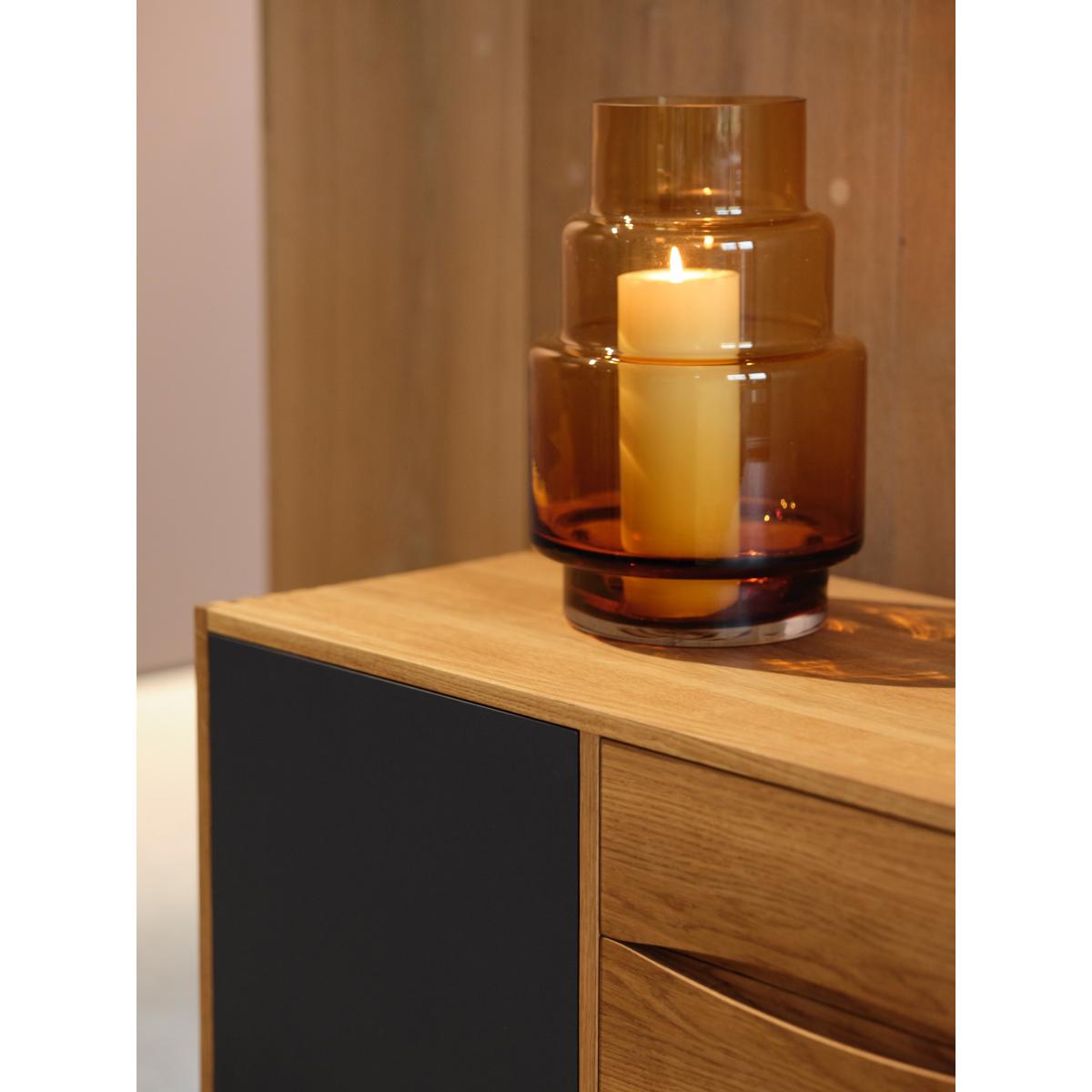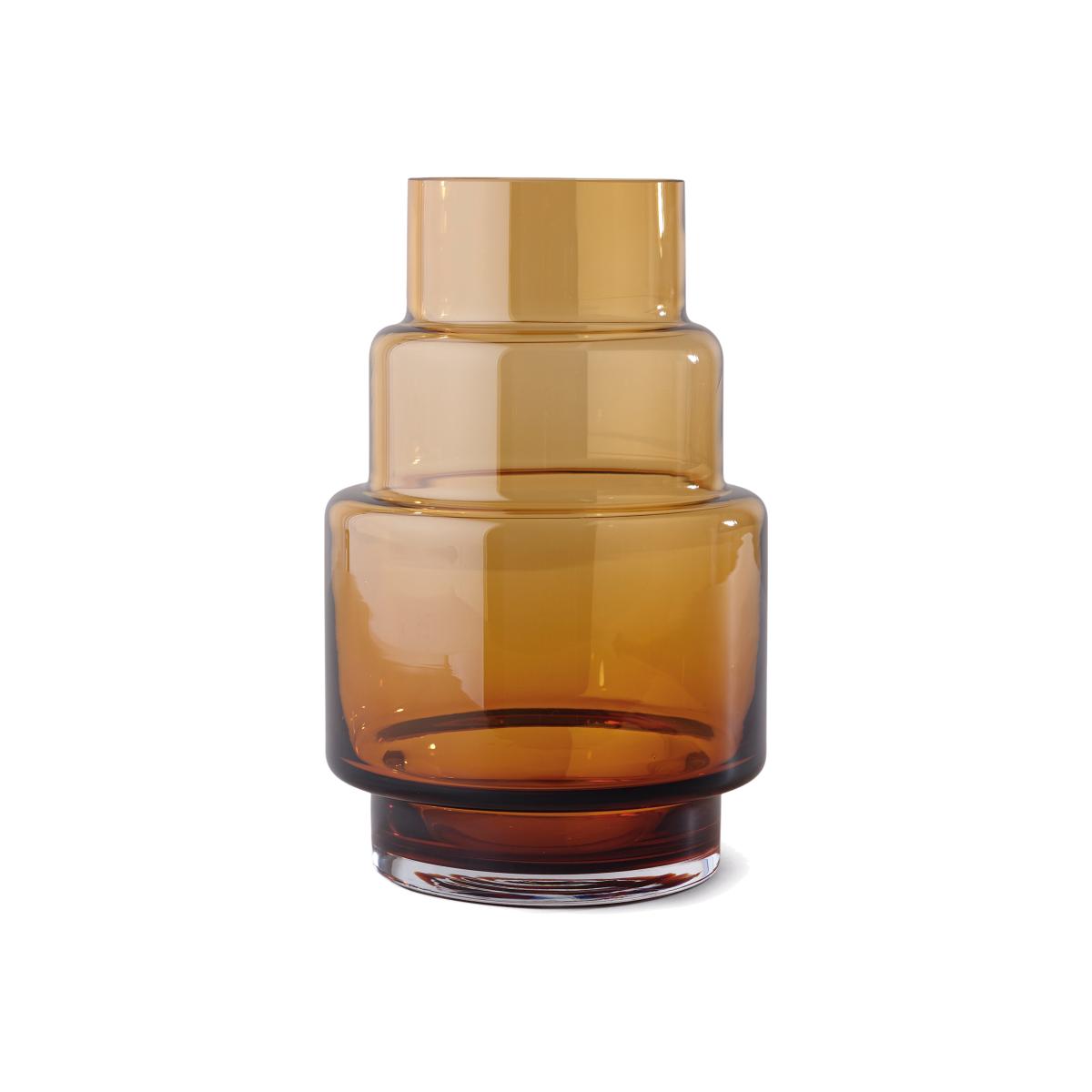I love this vase for its bold yet versatile silhouette and warm amber tone, which adds a touch of colour without overpowering a scheme. It works particularly well in contemporary or minimalist interiors, where its clean lines and rich hue can really stand out. For styling tips, try pairing it with simple botanical stems or dried foliage for an understated look, or cluster it with other similarly coloured pieces for a more dramatic effect. It also performs well as a standalone statement piece on a side table or shelf, making it a practical yet attractive addition to many living spaces.