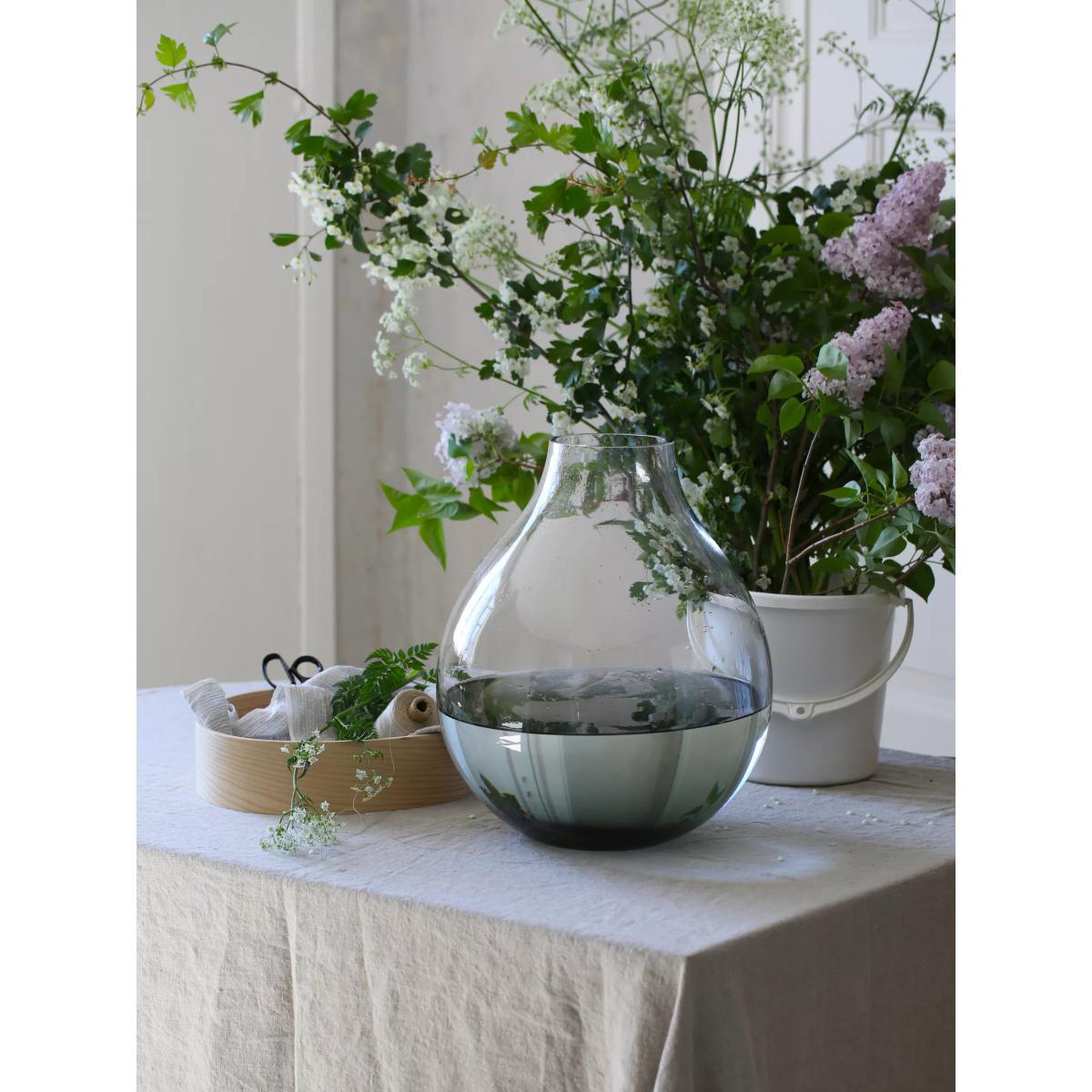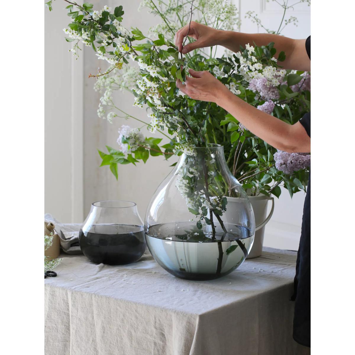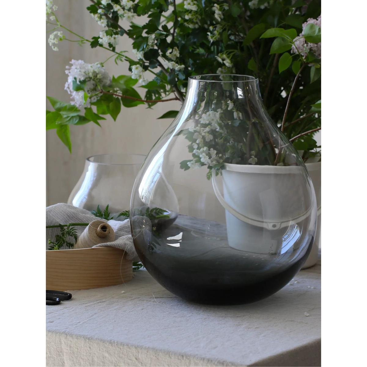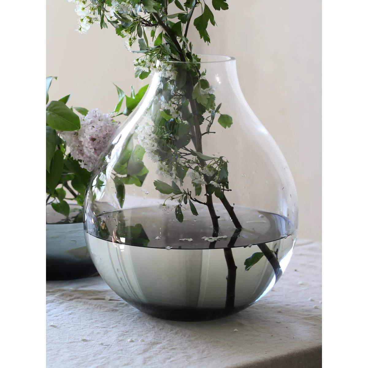 Mouthblown from heavy glass the Flower Vase from Ro Collection has an ombre effect as the smokey colouring slowly fades into the crystal clear glass. An interesting take on a posy vase the tall, large shape and thick glass give it a solid standing for a sideboard. As each vase is handmade it will have its own individual air bubbles and there will be differences in the colours and transparency from vase to vase, making each piece truly unique.