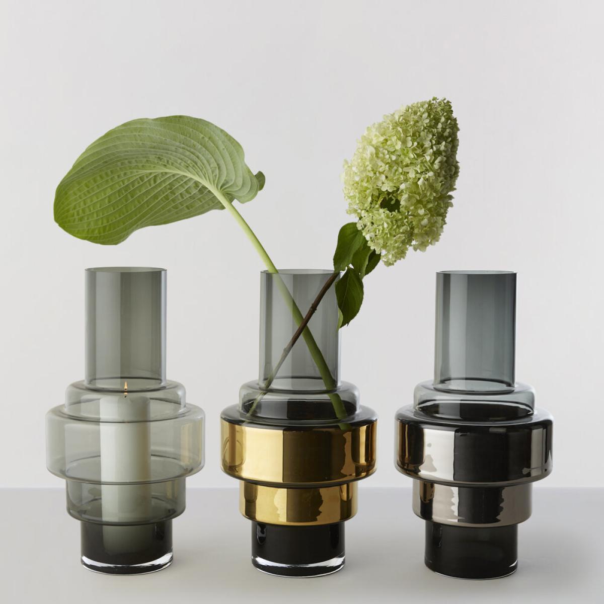 Light up cosy moments inside or out with Ro Collection’s No. 45 Hurricane. Designed by creative director Rebecca Uth, when used to hold a candle this design adds evocative light to evenings on the balcony or terrace as well as indoor spaces. The spacious inner of the hurricane allows the candle to burn with a steady flame wherever it’s used. This design can also be used a vase for your favourite flowers, and features a hand-painted gold or platinum band at the bottom.