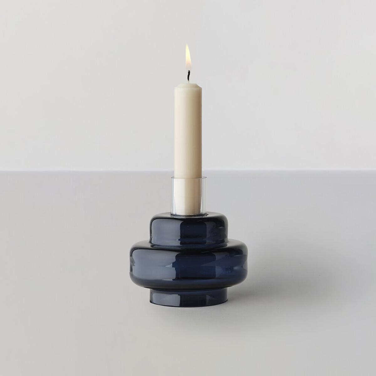 Ro Collection - No 54 Glass Candlestick - Indigo Blue