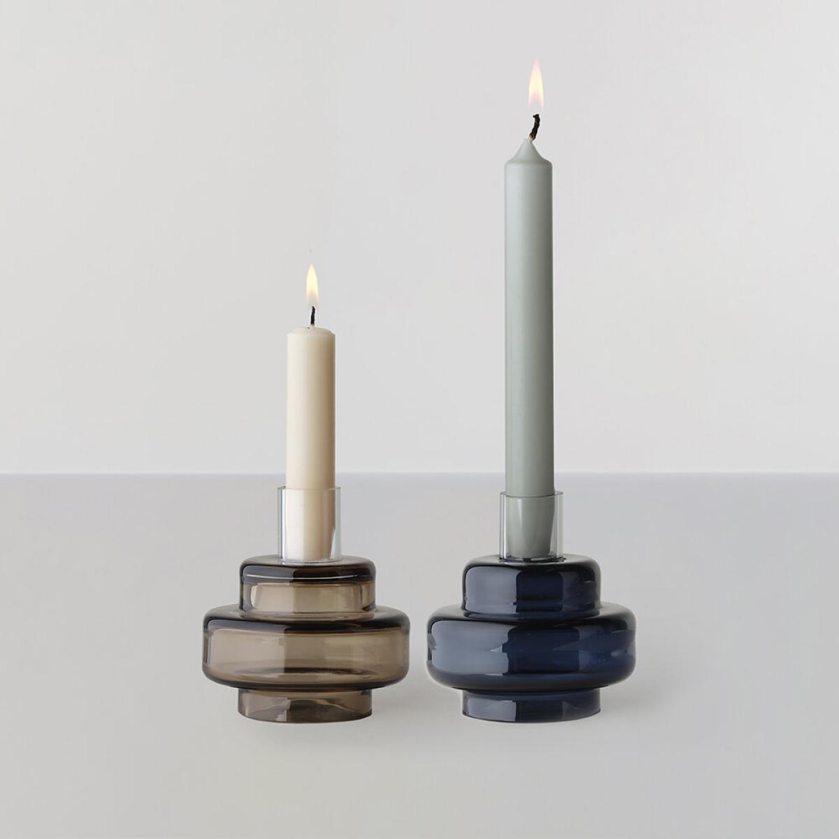 I love this blue glass candlestick for its sleek, modern silhouette and rich indigo hue, which adds depth and sophistication to any space. It works particularly well in contemporary and minimalist interiors, where it can serve as a striking accent piece. For styling tips, try grouping it with complementary tones like greys and whites for a calm, cohesive look, or pair with warm metallics such as gold or brass to elevate a more eclectic setting. Its versatile size makes it perfect as a centrepiece on a dining table or as a bedside table accent, especially when paired with taper candles for a cosy, inviting glow.