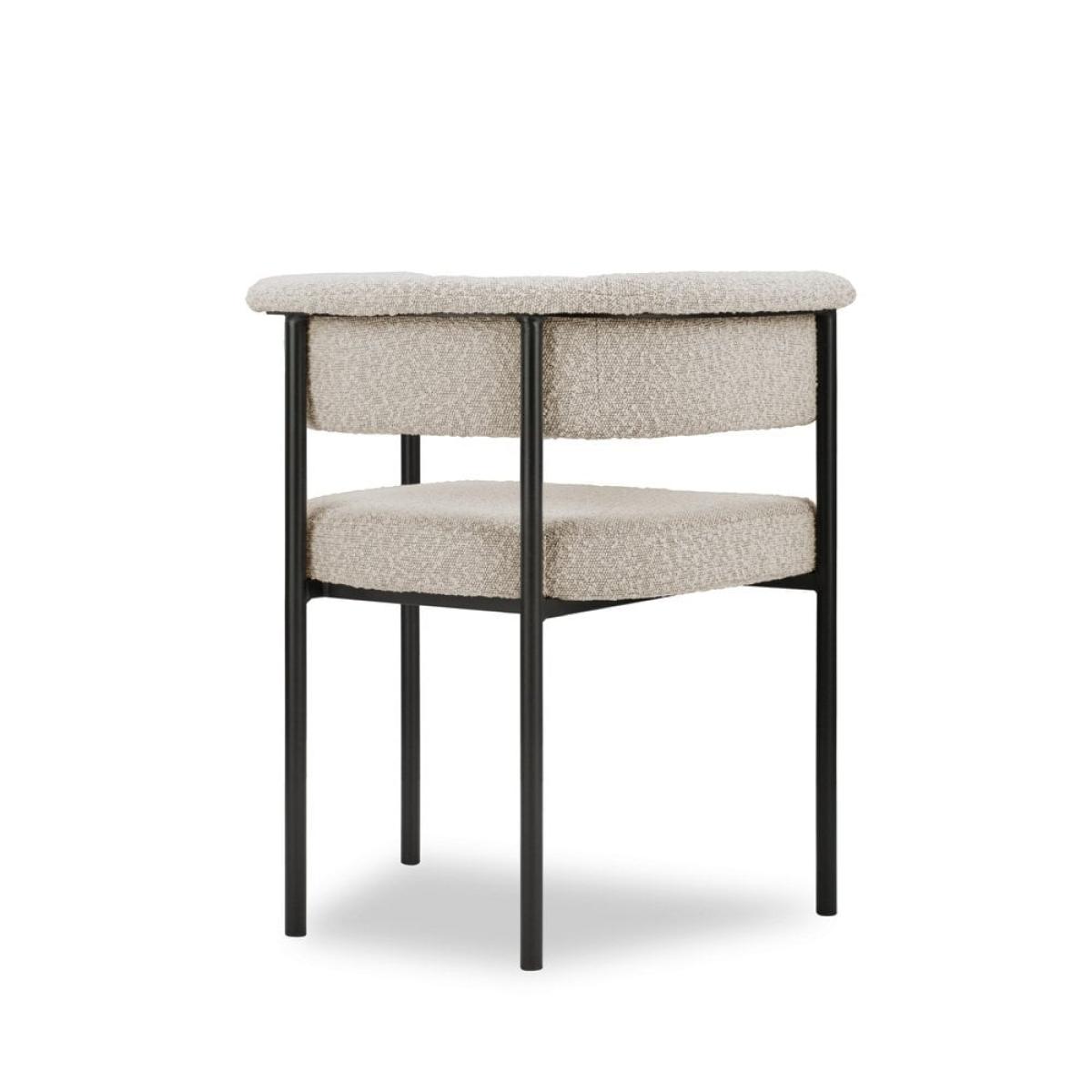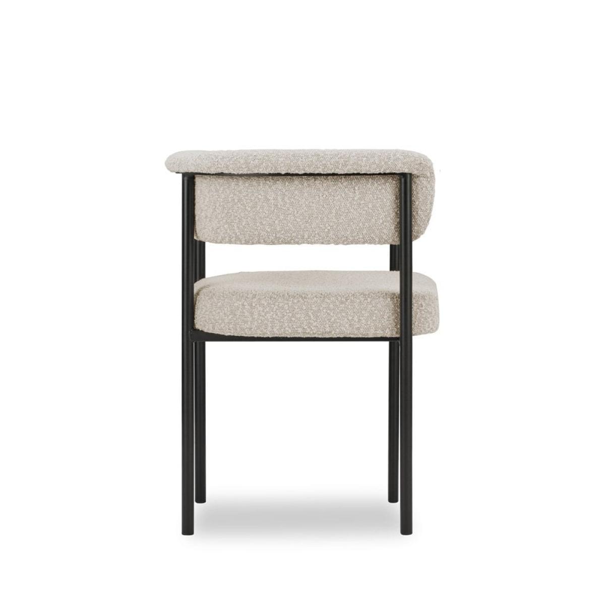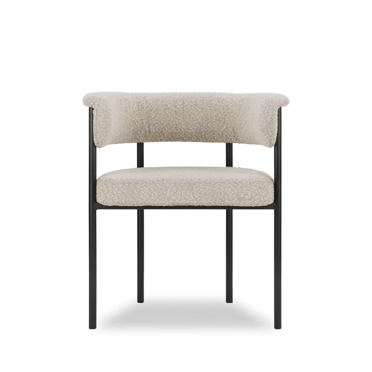 I’d call this simply the Carver chair, and what I like most is its plush boucle upholstery balanced by a slender black metal frame - it brings texture without bulk. It works equally well in a pared-back Scandi dining room or a more industrial space where the soft fabric offsets harder surfaces. For styling, pair a row of Carvers with a light oak table and add woven placemats to highlight the boucle’s speckled tones. In a multipurpose room, use one as a desk chair and introduce a dark leather cushion for contrast. The neutral colour means you can change up linens or tableware seasonally without worrying about clashes.