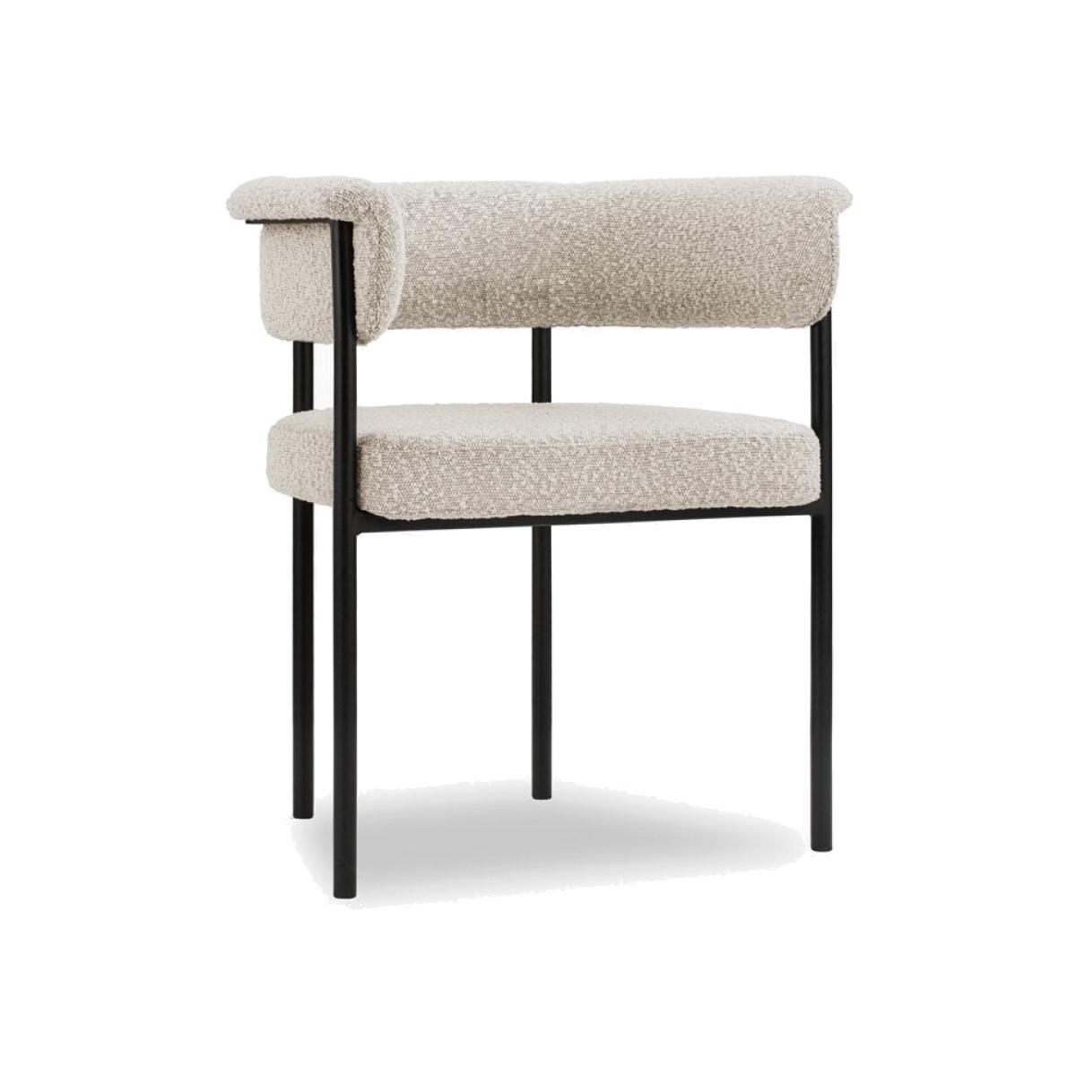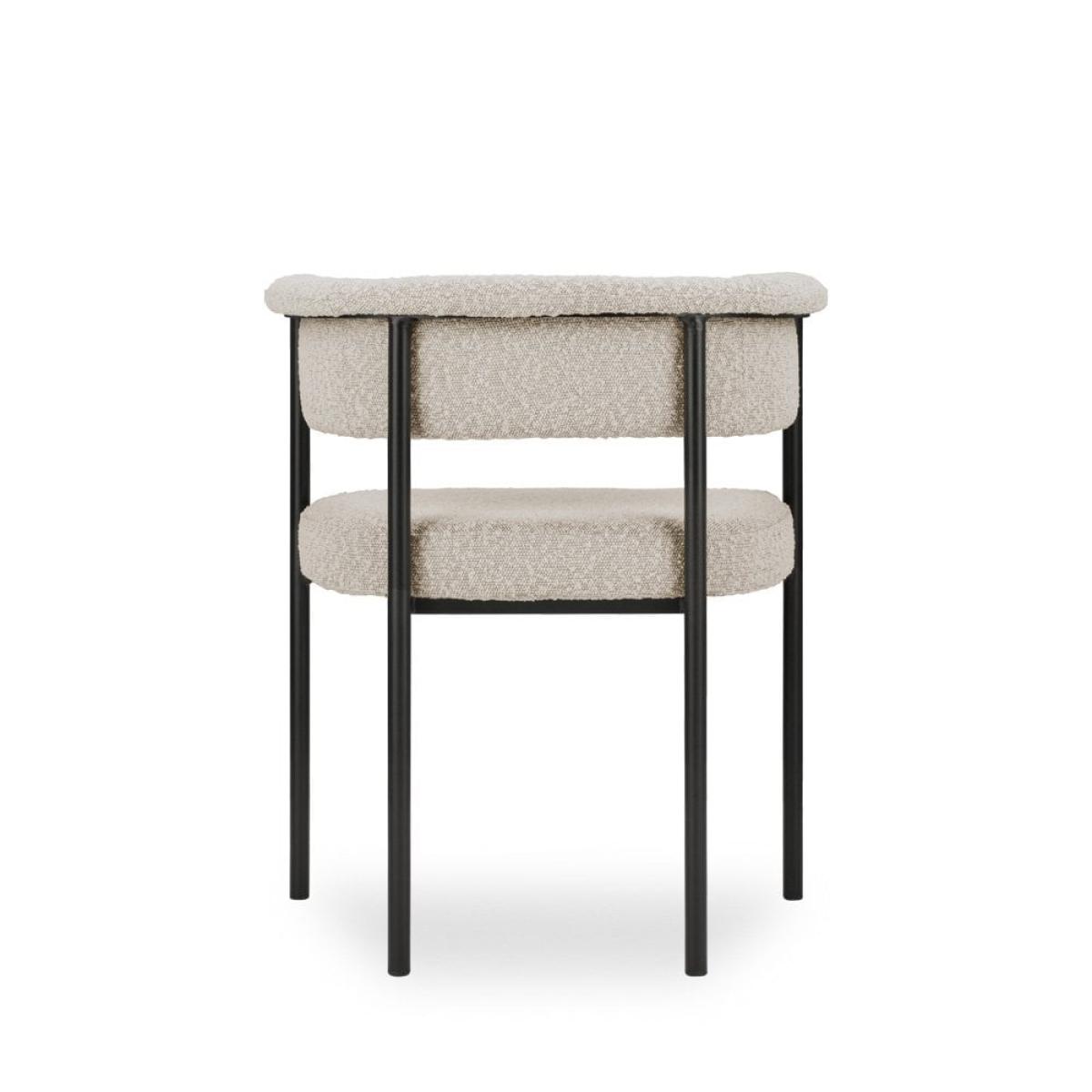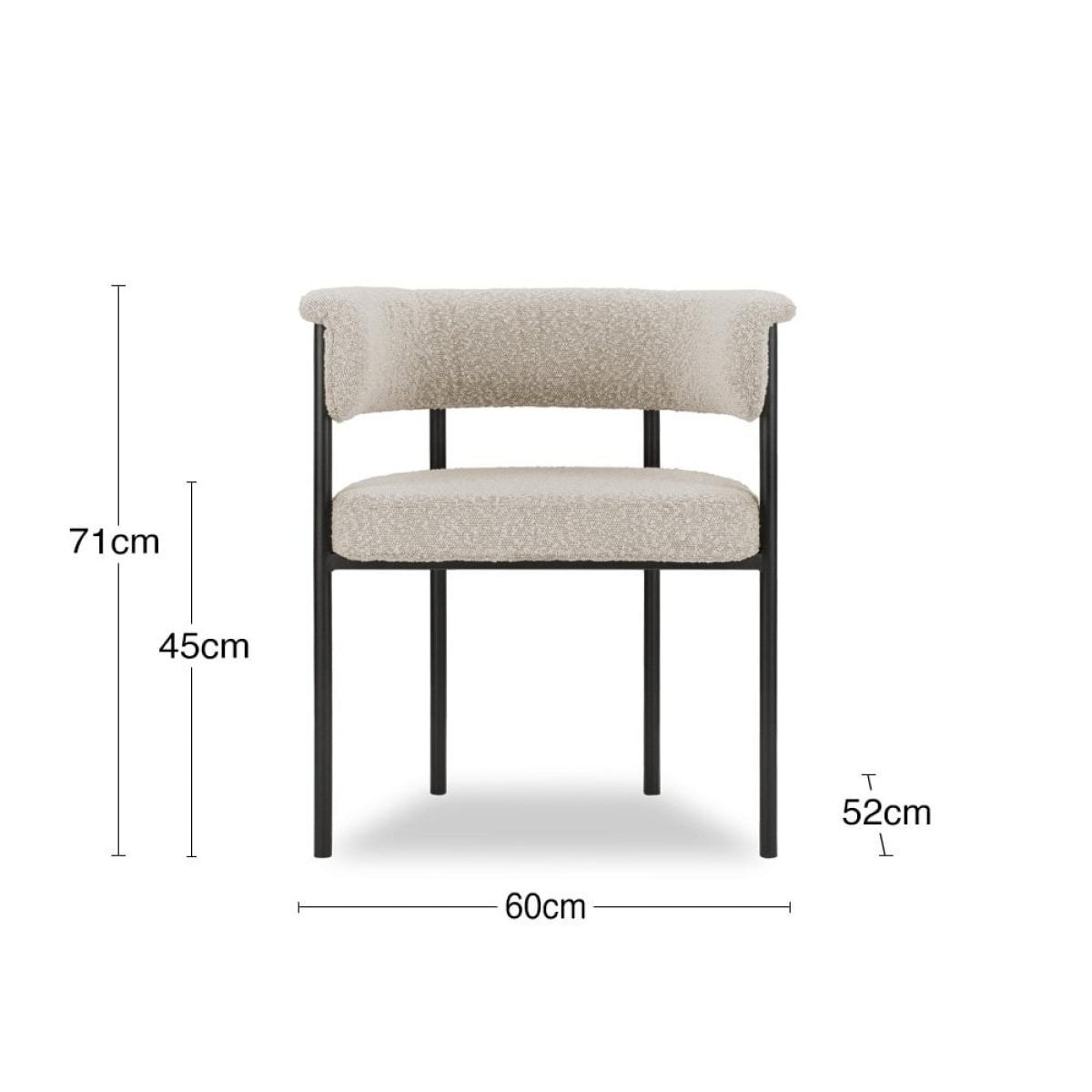 I’d call this simply the Carver chair, and what I like most is its plush boucle upholstery balanced by a slender black metal frame - it brings texture without bulk. It works equally well in a pared-back Scandi dining room or a more industrial space where the soft fabric offsets harder surfaces. For styling, pair a row of Carvers with a light oak table and add woven placemats to highlight the boucle’s speckled tones. In a multipurpose room, use one as a desk chair and introduce a dark leather cushion for contrast. The neutral colour means you can change up linens or tableware seasonally without worrying about clashes.