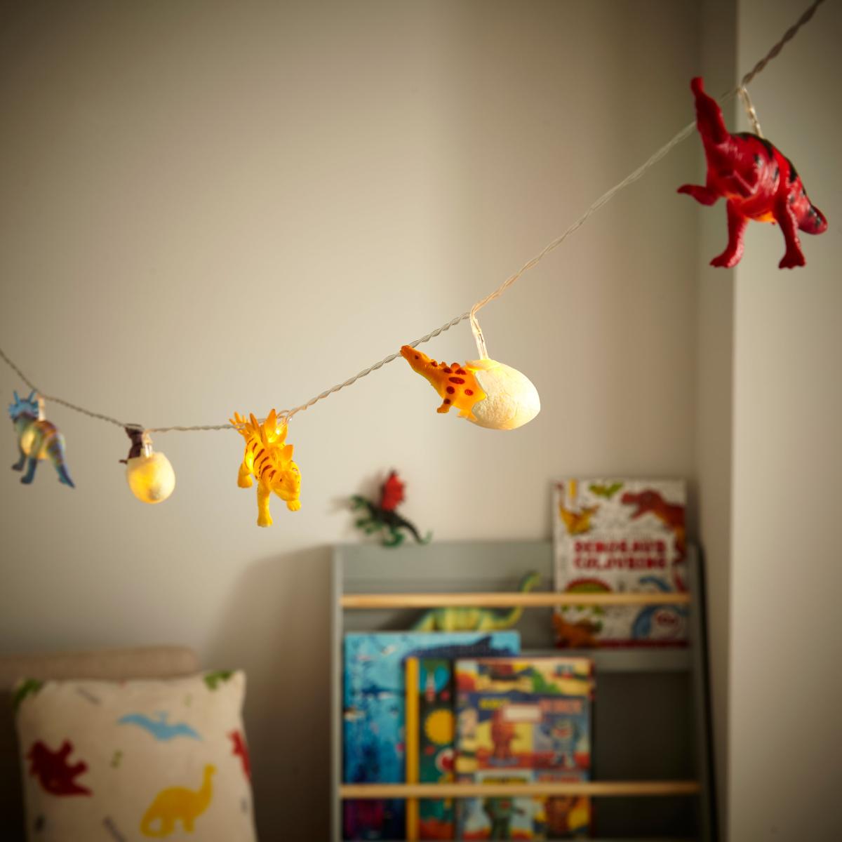 * Adorable Dinosaur Design* 10 String Lights* Requires 2 x AA Batteries (Not Included)Featuring all your favourite dinosaurs, delicately decorate the room with a touch of light. Requires 2 x AA batteries that are not included.